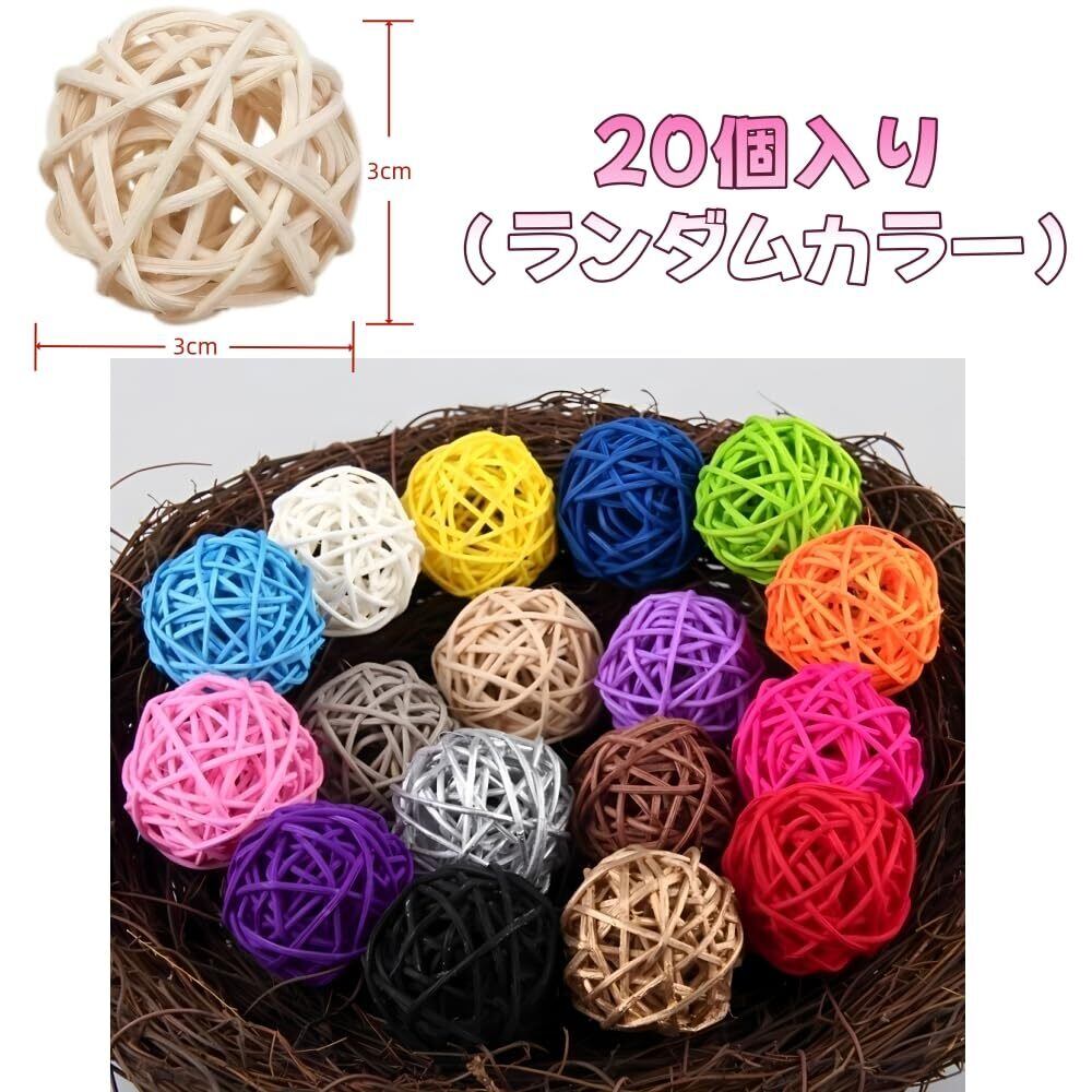 1.【製品仕様】10個入り、直径約3cm、ランダム色 つかんで、転がして、かじって、喜んで夢中になって遊んでくれる定番のバードトイです。 2.【安心安全な素材】自然の木を編んで作られた、耐久性あり、ペットに安心に利用できます。 3.【遊び方いろいろ】鳥は人間よりも色彩感覚が強いとも言われています。色とりどりのマンチボールに鳥さんたちも大喜びですね。つかんだり、かじったり、転がしたりして楽しく遊ぶことで鳥ちゃんのストレス解消に役立ちます。 4.【使用ガイドライン】クチバシの伸び過ぎ防止や噛みたい欲求のストレス発散におすすめです。鳥ちゃんの興味を高め、隙間にエサやティッシュを入れることで、さらに夢中になって遊ぶことができます。 5.【広く使われています】ハムスター、スナネズミ、インコ、オウムなどの小動物のおもちゃ。 手工芸DIYプロジェクト、パーティーハンギングデコレーション、テラスのデコレーションなど。