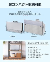軽量、小型設計:Urlife塗装ブースの折り畳みスペースサイズ:40.5×22×27cm(幅×奥行×高さ)自社の前モデル(DFPBシリーズ)に比べ、約49%小型化を実現!場所を選ばず、狭いお部屋や一人暮らし用のデスクデスクでも快適に塗装作業が楽しめます。さらにハンドル付きで、どこでもお手軽に使用できる便利なデザインです。