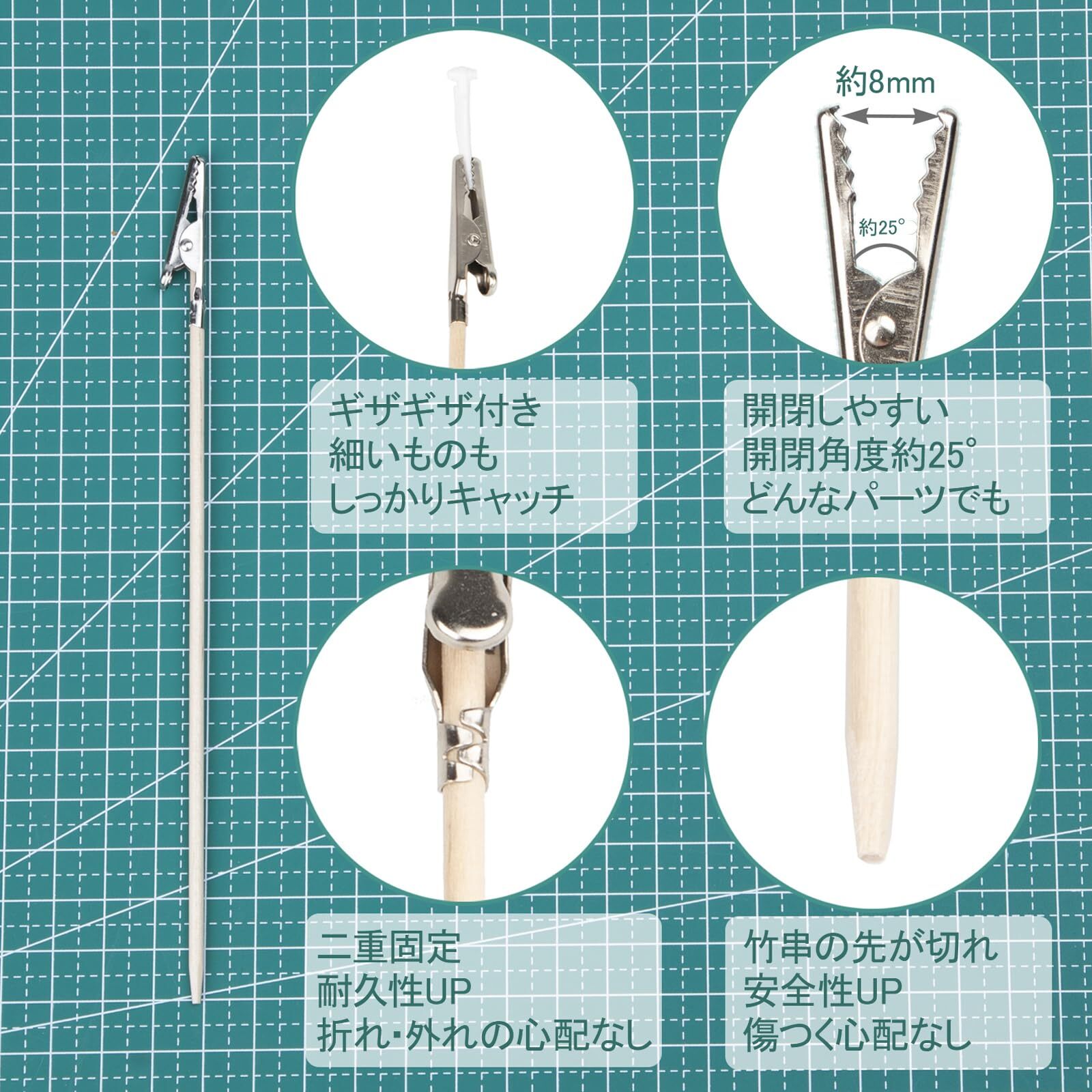金属製クリップ:クリップは金属で作られ、耐蝕性が高いです。ギザ付き、小さな・細いパーツでもしっかりキャッチすることができます。開閉角度は約25°で、ほとんどのパーツを掴むことができます。二重固定するため、耐久性を高め、折れ・外れの心配はありません。