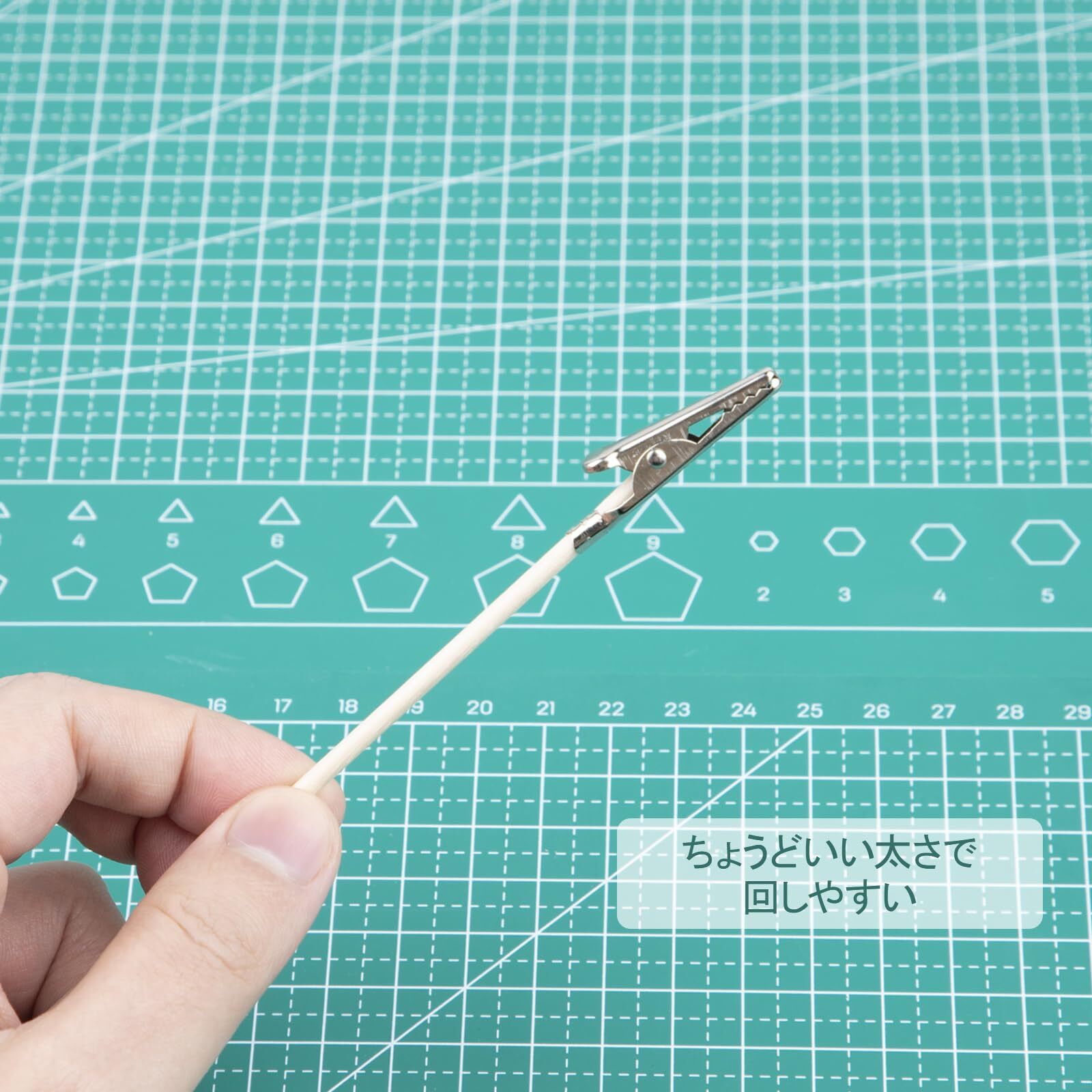 使い勝手がいい塗装棒:約2.9mmの竹串で作られ、手触りが良く持ちやすいです。誰でも手にしっくり、ちょうどいい太さで回しやすいです。また、竹串の先が切れたので、傷つく心配はありません。