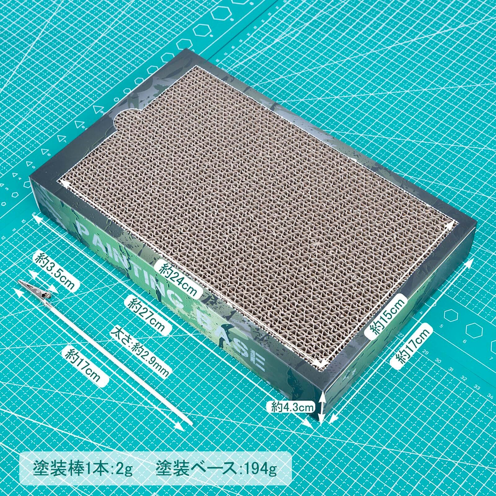 安定感ある塗装ベース:直径2mmと3mm規格の塗装棒など対応致します。付属の2.9mmの塗装棒を3mmの差し穴に刺すと、安定感もあり転倒しにくいです。約4.3cmの分厚いペインティングスタンド、もっと長い塗装棒でも対応できます。