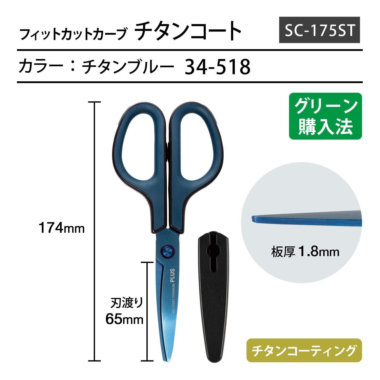 プラス はさみ 汚れ・サビに強い フィットカットカーブ チタン 切れ味継続加工 ブルー SC-175ST 34-518