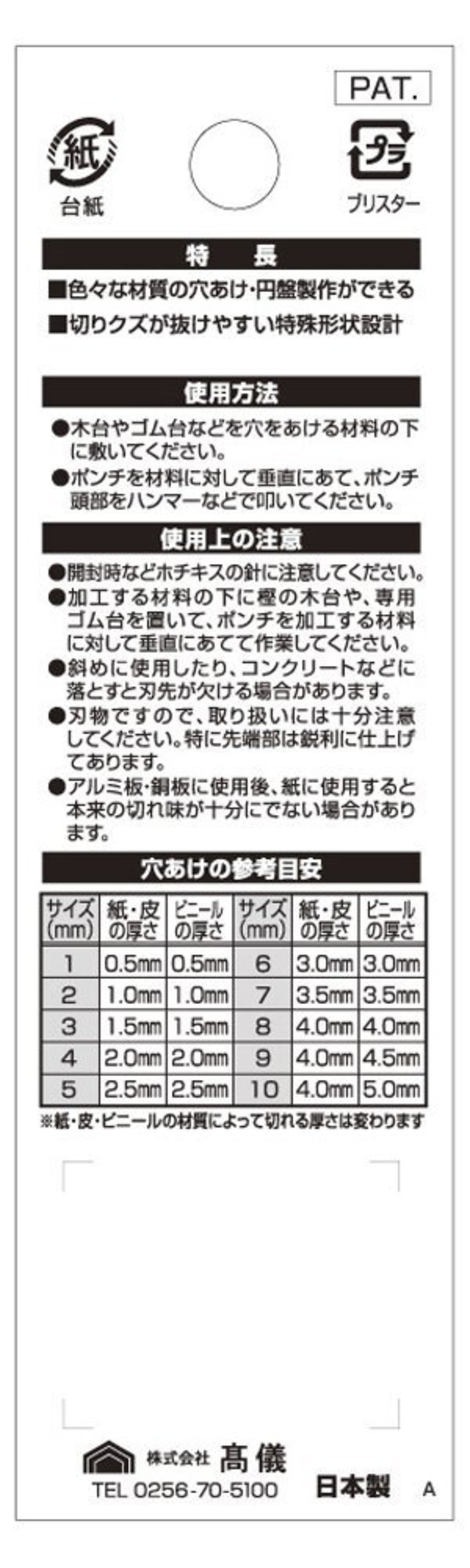 このポンチを使用することで、ただ穴をあけるだけでなく、円盤を作ることも可能です。様々なサイズの円をカットすることができ、創造的な作品作りをサポートします。自分だけのオリジナルアイテムを作るための強力なパートナーです。