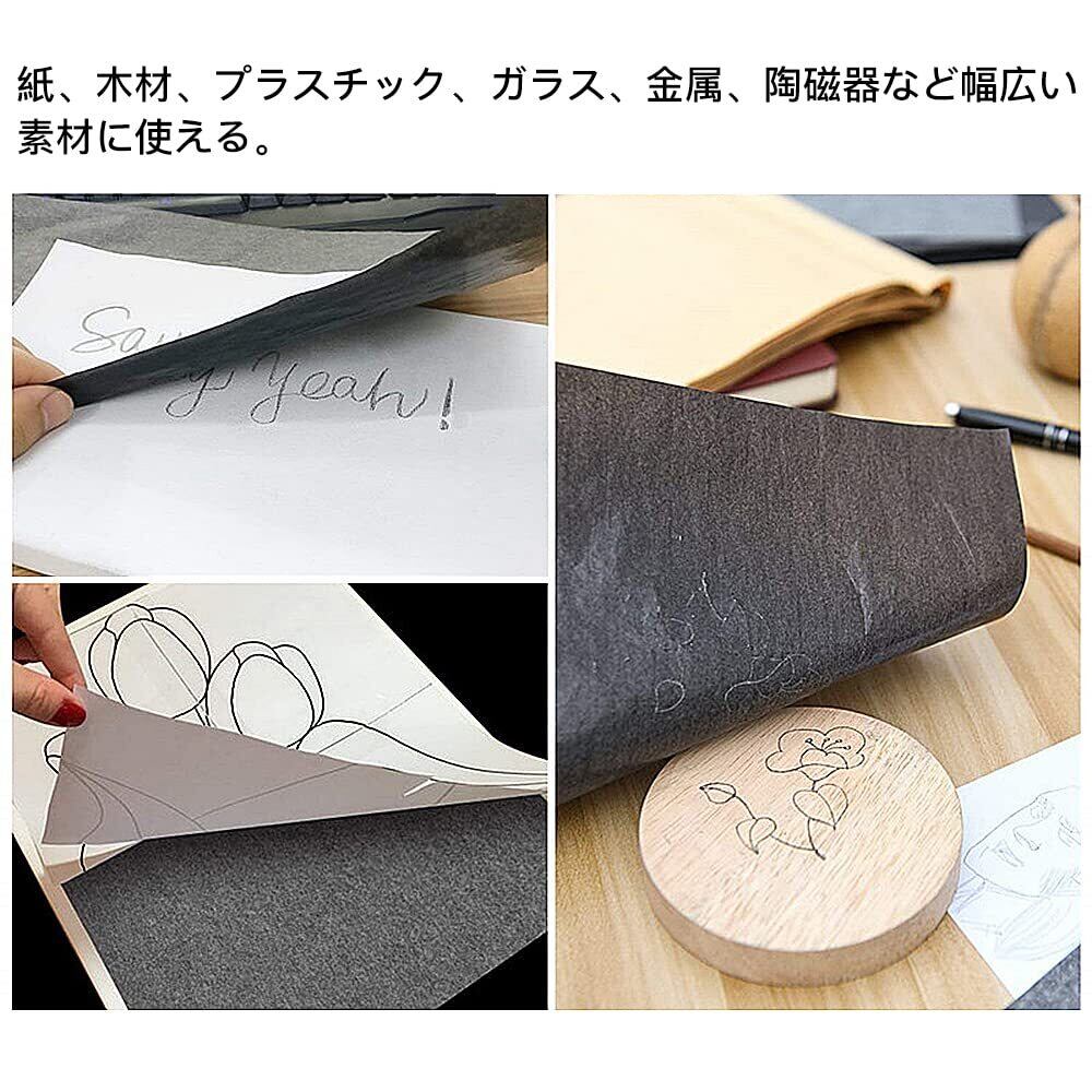 このカーボンペーパーは、様々な素材に対応しており、絵画・デザイン・転写など、さまざまなアートスタイルで活用できます。特に版画や工芸作品には欠かせないアイテムです。