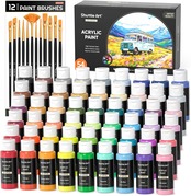 54色アクリル絵具、Shuttle Artアクリルペイントセット、ペイントブラシ12本、2オンス/60mlボトル、リッチ顔料、防水、アーティスト、初心者、子供用プレミアムペイント キャンバス ロック ウッドセラミック