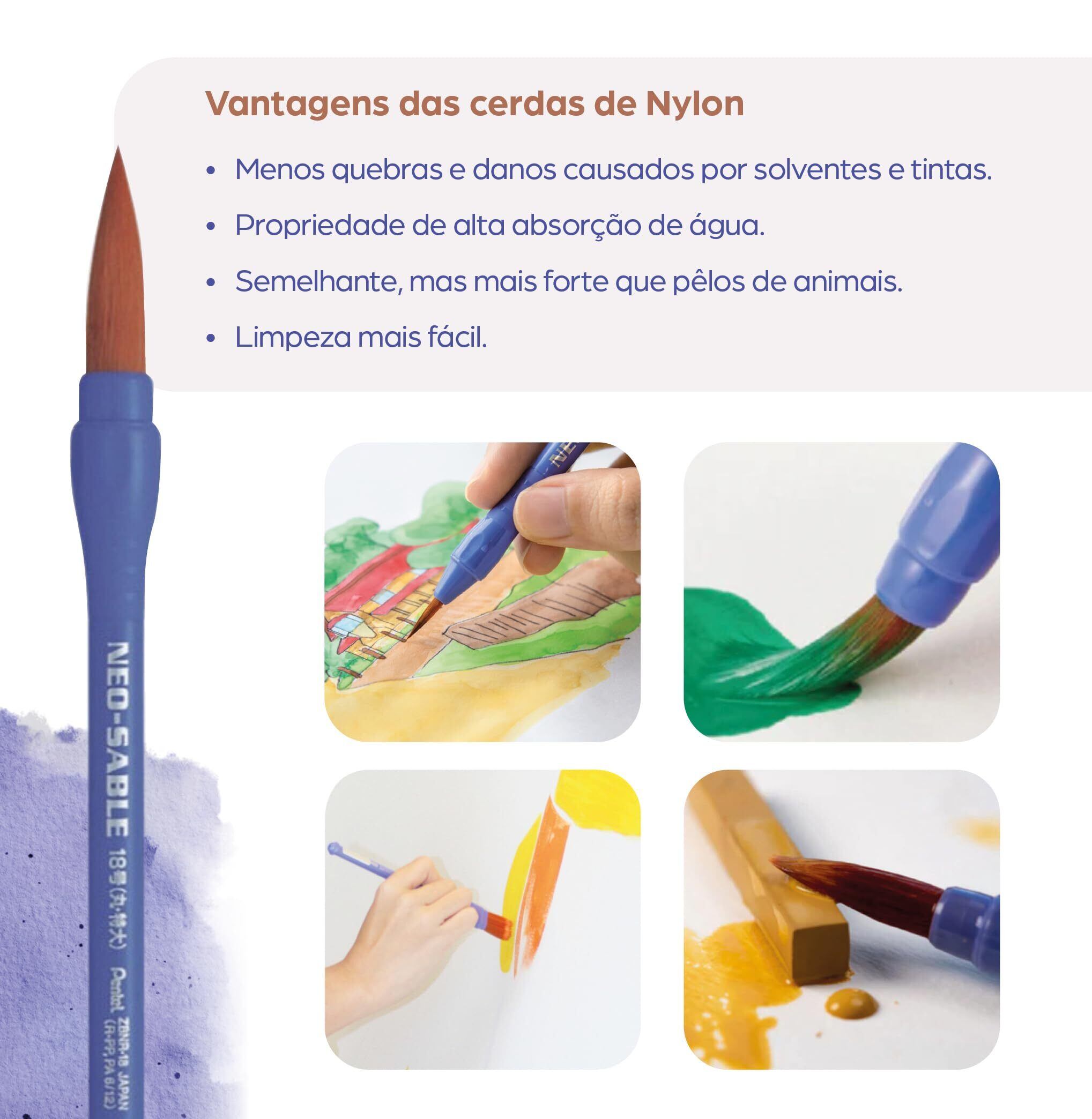 様々な種類のナイロン毛をブレンドし均一に配合しているので、穂先の水ふくみが良く、広い面もムラなく一度に塗る事ができるため、描画がスムーズです。