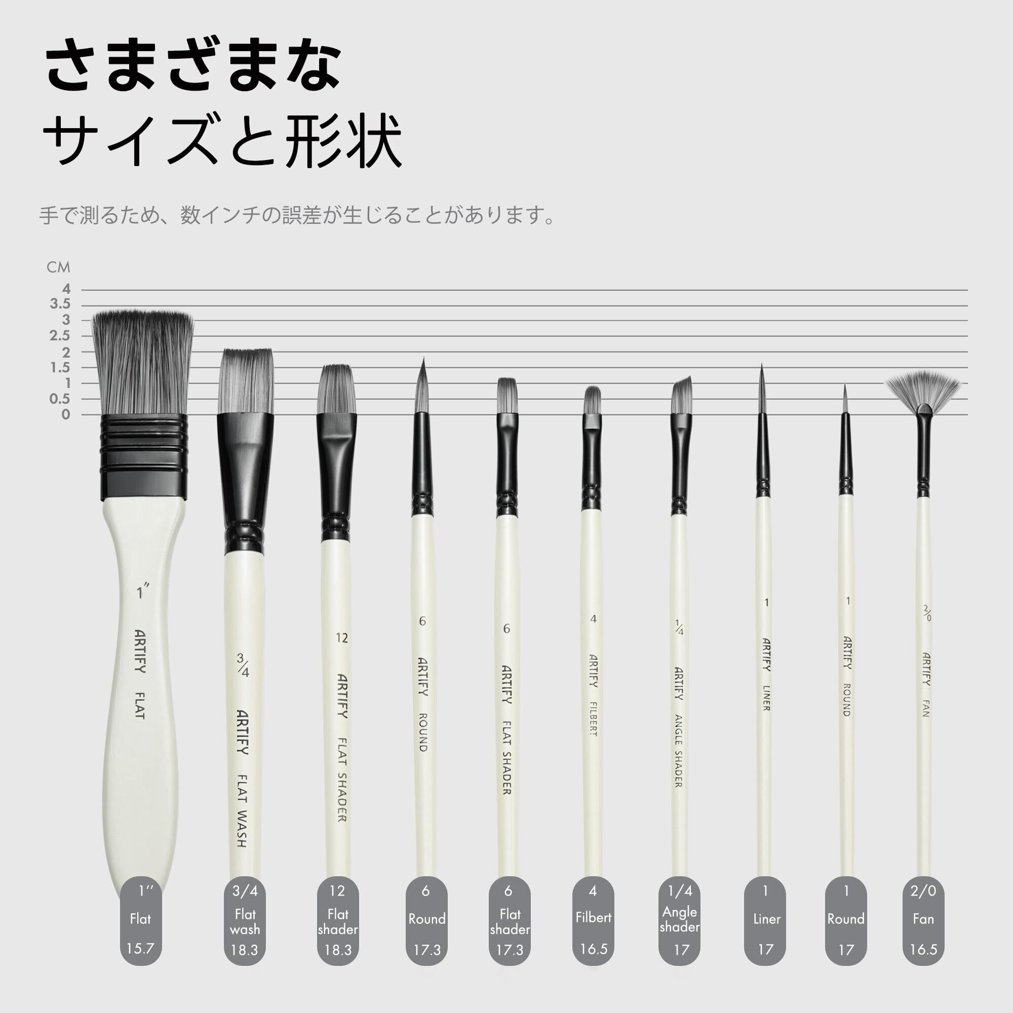 Artify 絵筆セット 10本入り 筆セット 水彩 油彩 油絵 アクリル ガッシュ絵 ナイロン製 絵具 画筆 ペイントブラシ ケース付き 丸型 平型 円頭 扇型筆 画材 ホワイト