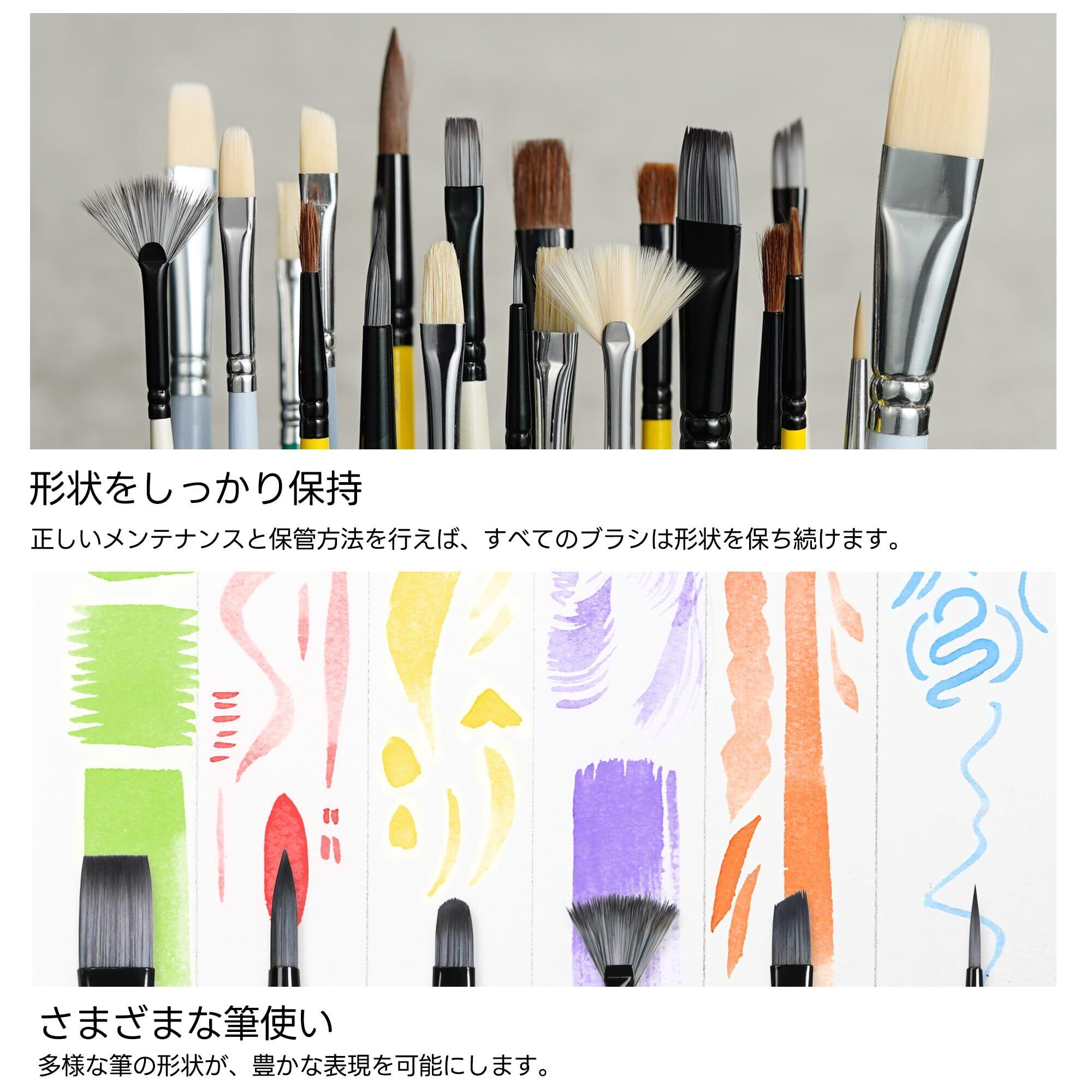 セットの筆は耐久性と柔軟性に優れたナイロン素材を使用しており、絵具の含みが良く、なめらかな描写が可能です。初めての方からプロのアーティストまで、満足できる使い心地をお約束します。