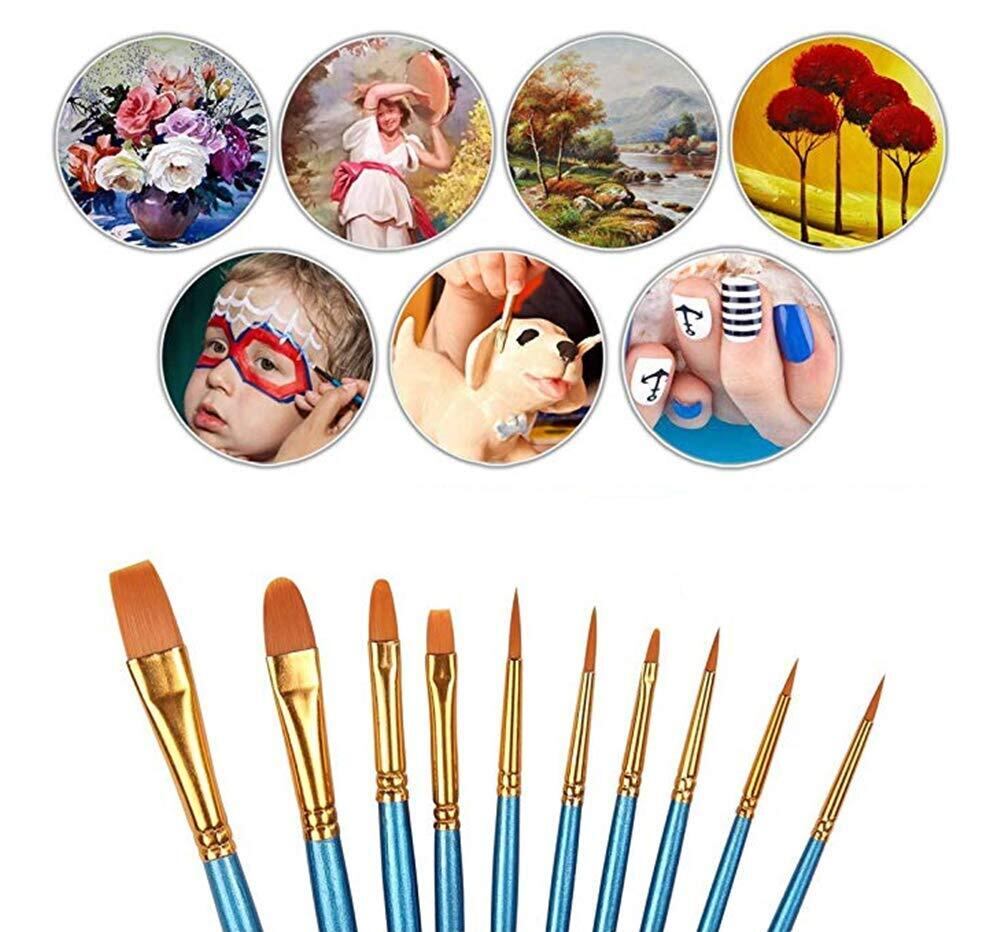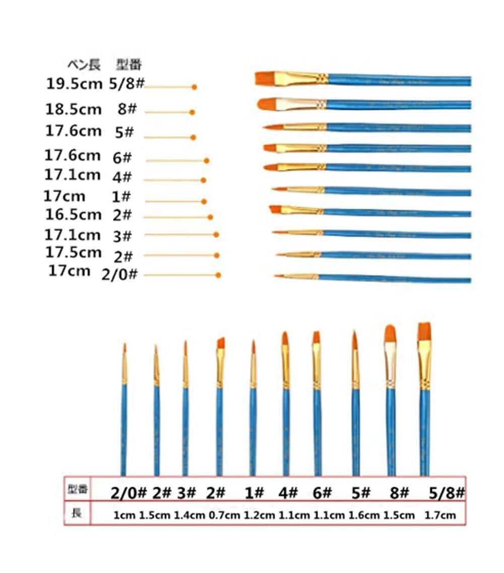 DFsucces 画材筆 ペイントセット ブラシ アクリル筆 水彩筆 油絵筆 画筆 丸筆 平型筆 平型円頭筆 短毛筆 10本セット(ブルー)