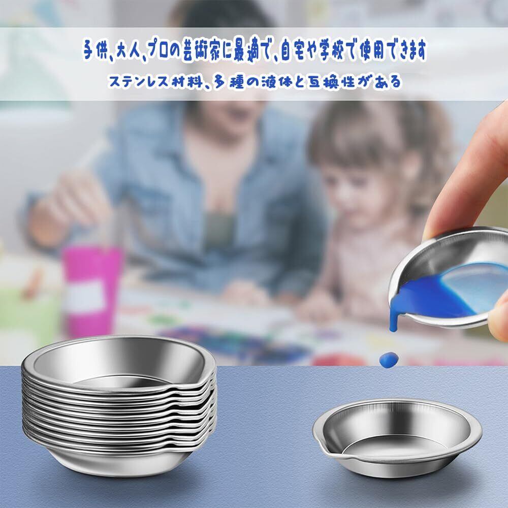 【コンパクトで持ち運びが容易、十分な数量で構成】このステンレス製の絵具皿は直径がわずか 5cm で、小型で持ち運びが簡単です。野外での写生やアートの授業に出向く際にも、道具バッグに簡単に収納できます。1 セットには 12 個の絵具皿が含まれており、数が十分で、様々な制作ニーズに対応できます。様々な色を調合する場合や、異なる種類の絵具を区別する場合でも、円滑に対応できます。
