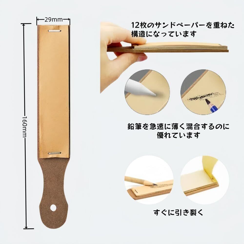 セットには、作品の仕上げや調整に役立つ紙ヤスリも含まれています。デッサンやイラストを描く際に、かすれた部分をスムーズに整えることができます。これにより、作品の質感を一層引き立てることができます。