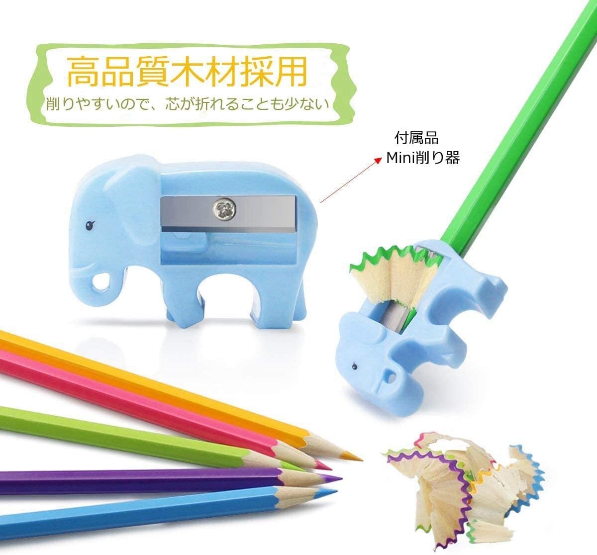 高品質な芯:高品質原材料を採用し、芯が折れにくく、削る際にも芯が折れにくくなっています(鉛筆削り付きですが、でも、鉛筆削りの色はランダムで色の選択は出来ません、ご理解してください)