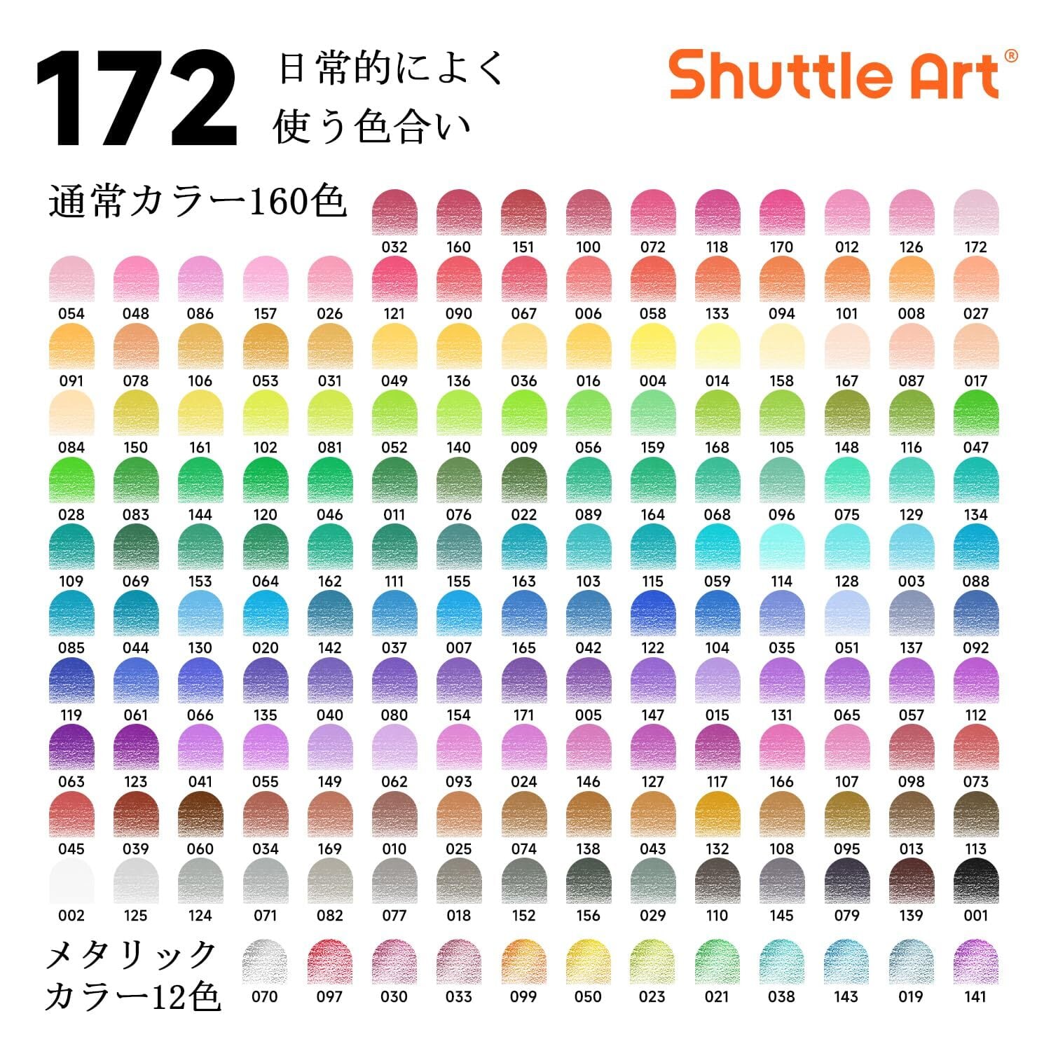 Shuttle Art 色鉛筆 172色 油性色鉛筆 カラーペンセット 大人の塗り絵 メタリック色 イラスト デザイン デッサン 落書き 紙函 子供用 初心者 入園・入学お祝い プレゼント