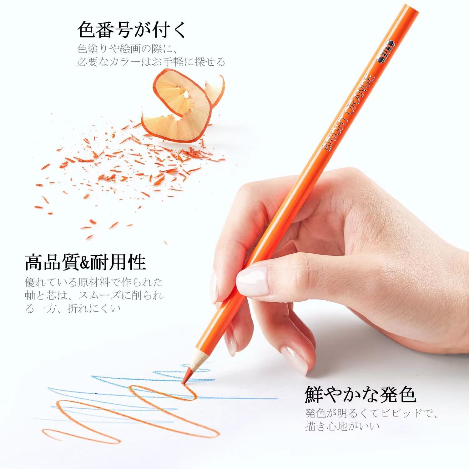 【安全で使いやすい】無毒、無酸、環境にも身体にも優しいです。細い丸軸で滑り良くスムースに書けで、力を込めて書く必要はありません。長時間の筆記でも疲れにくいです。紙函に包装され、カラーシリーズで鉛筆を分けて、トレイに入れています。収納と色の選択は便利です。◎ご注意:3歳未満の子供に使用させないでください。また、幼児のそばで使用したり、幼児の手の届く所に置かないでください。
