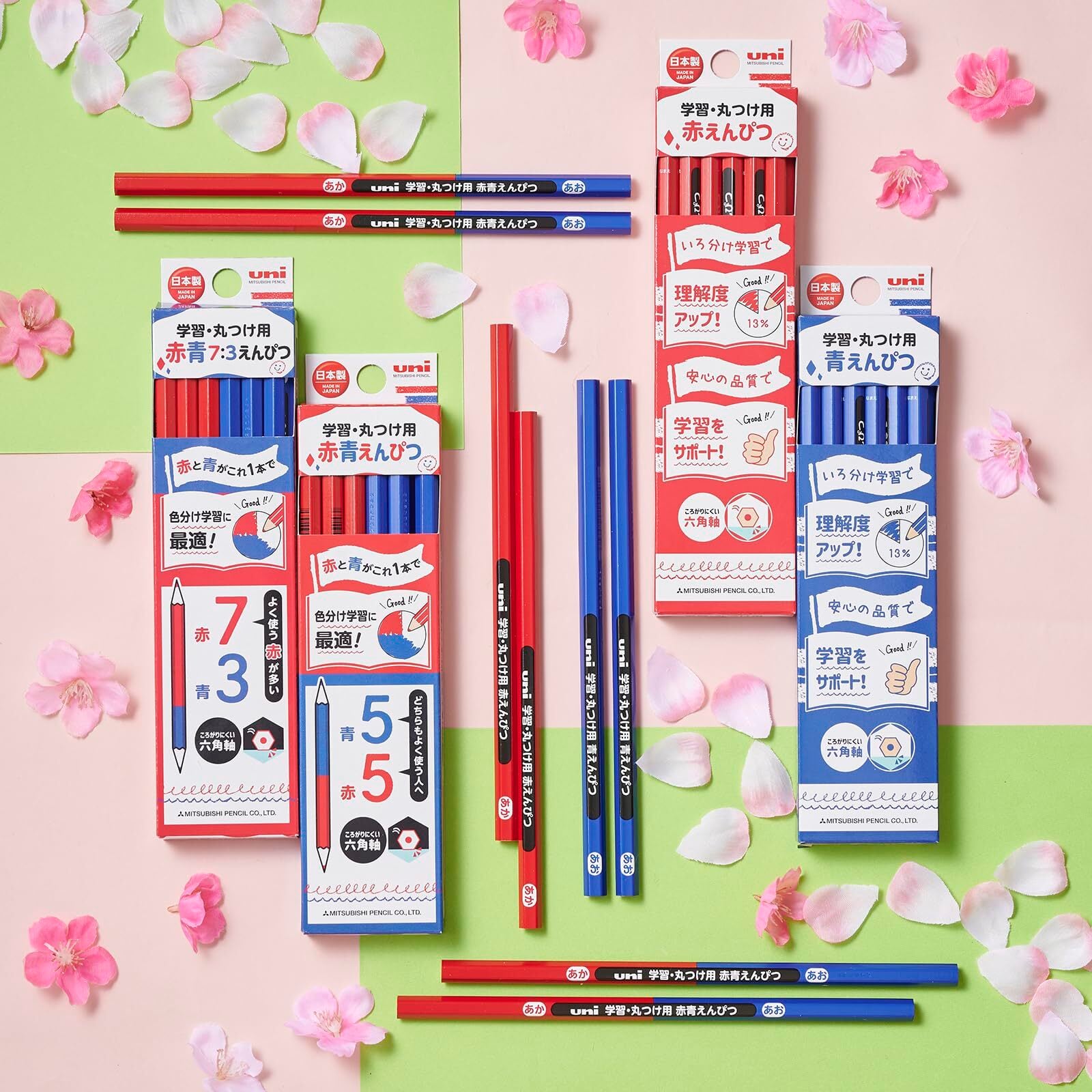 なめらかタッチと濃い発色。UNI学習・丸つけ用赤青えんぴつ。
