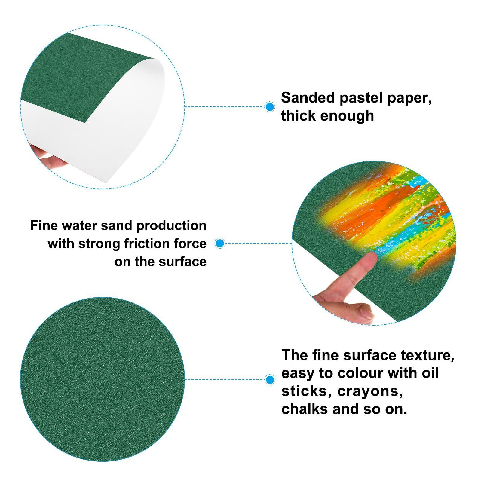 PATIKIL サンドパステルアートペーパー 10個 290 x 210 mm 色付きパステル画用紙 パステル クレヨン 鉛筆 木炭用 ダーク緑