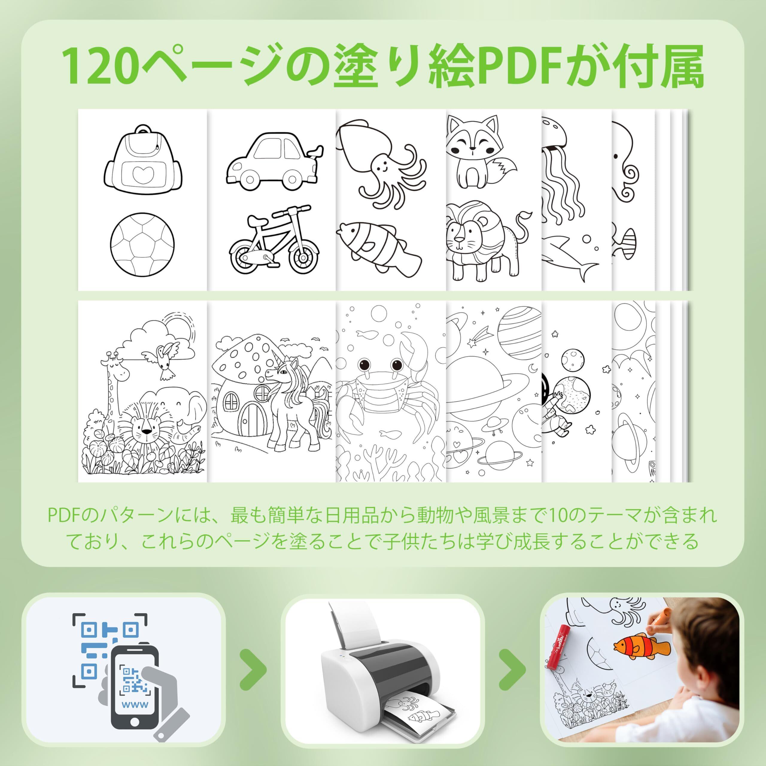 【30枚のステッカー&120枚のPDF塗り絵ページ】:このキットには30枚の称賛ステッカーが含まれています。これらのステッカーを子供や学生へのご褒美として使い、自己信頼を高めることができます。箱の裏にQRコードがあり、スキャンすると120枚のPDF塗り絵ページが手に入ります。パターンは10のテーマがあり、子供たちは楽しく絵を描きながら新しいことを学ぶことができます。