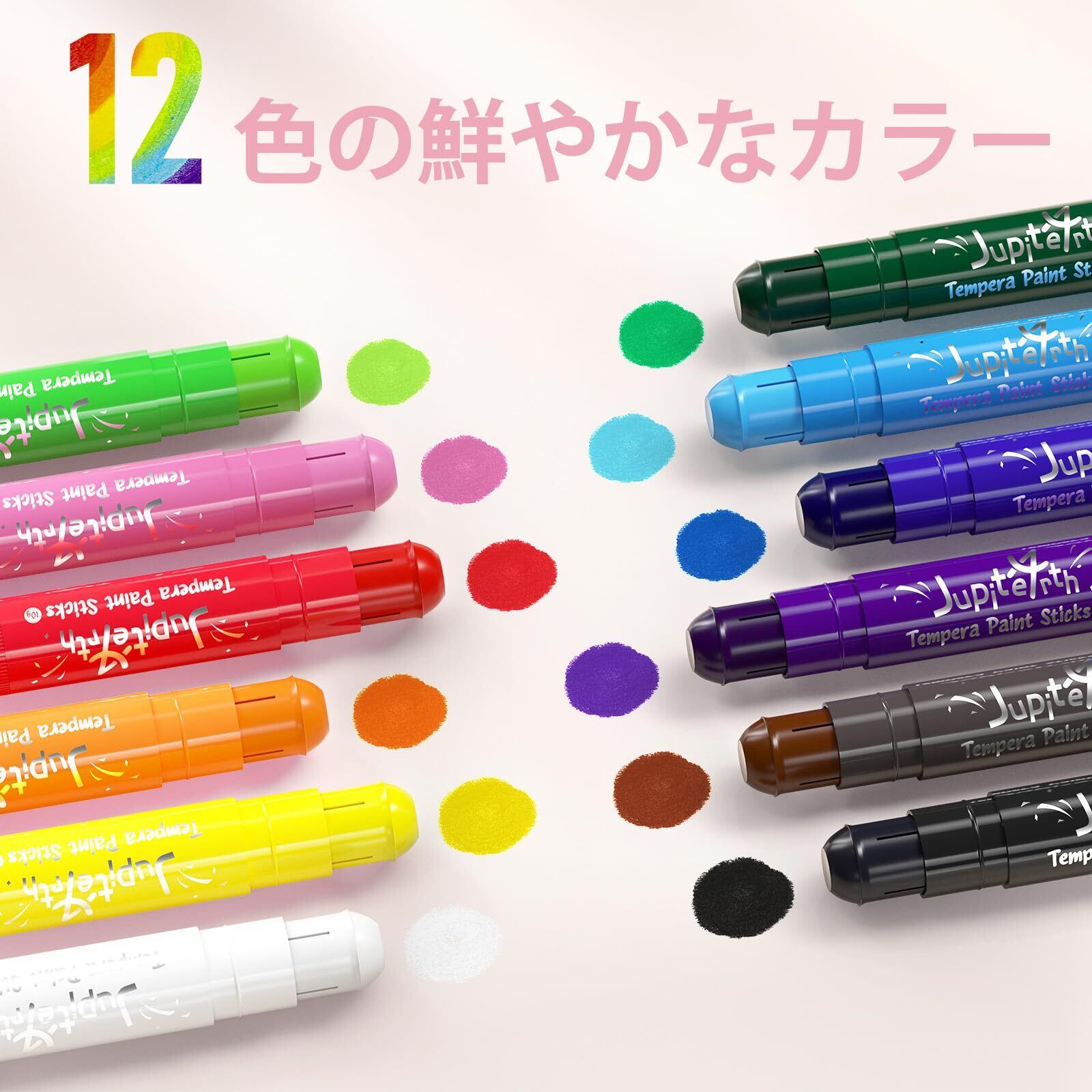 JUPITEARTH テンペラクレヨン 12色 パステルカラー テンペラペイントスティック 繰り出し式 持ちやすい 手汚れない 折れにくい 安全 無毒 水で落とせる 塗り絵 落書き お絵描き 絵の具 セット 小学生 赤ちゃん 幼児