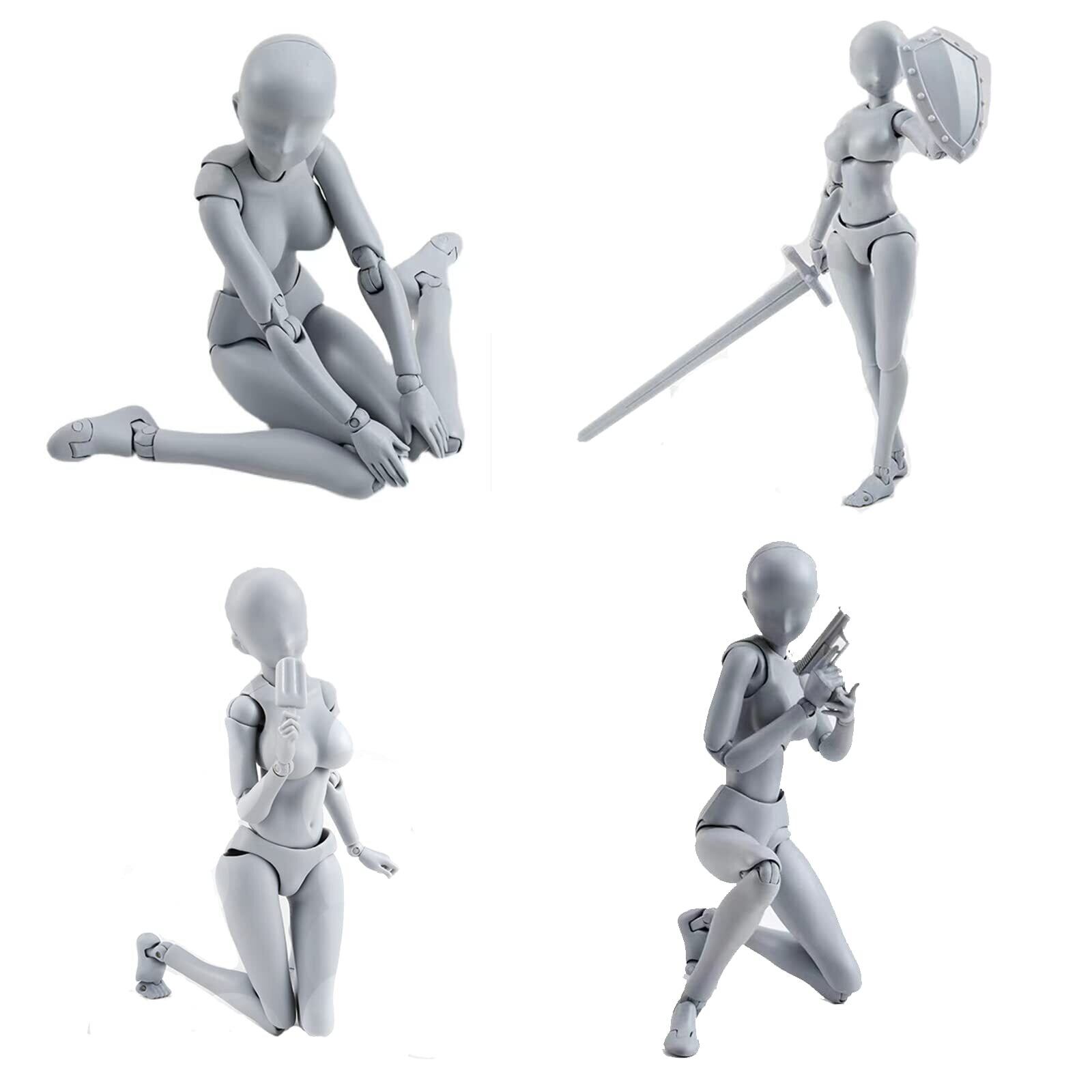 Gnallang デッサン人形 (男性女性モデル) 関節可動 スタンド付き ジェスチャー変更可能 モデル人形 漫画モデル 筋肉体型 合計2点セット|アーティストのための理想的なデッサンアシスタント!
