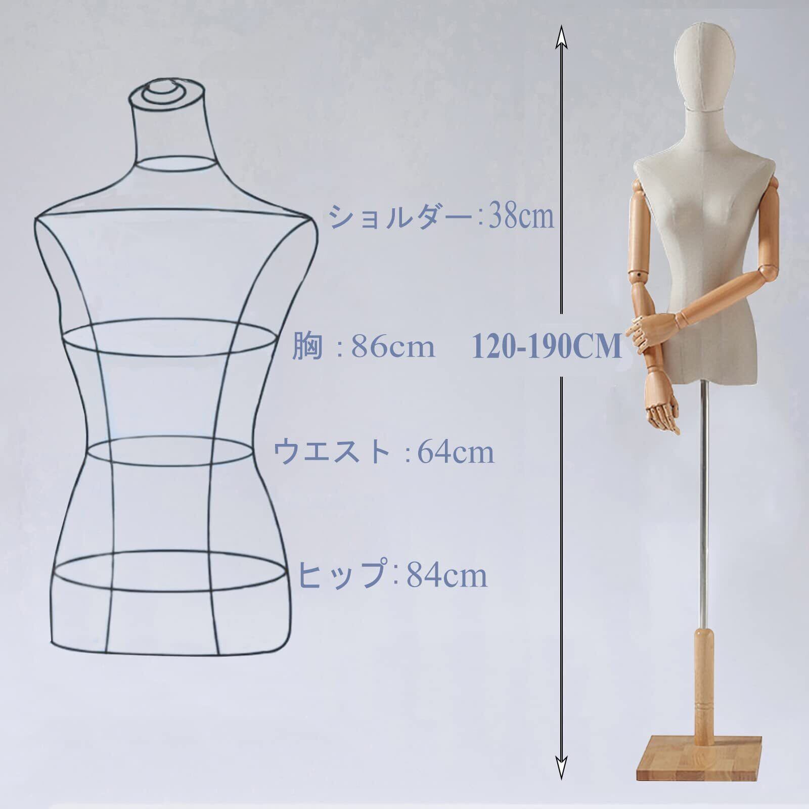 【高さ調節可能】さまざまな衣服に適応するために、マネキンの下にある穴のボタンを個別に操作して、マネキンの高さを調節できます。着丈は約120cm~182cmまで調節可能。モデル上半身:90cm、肩幅:36cm、胸囲:82cm、ウエスト:61cm、ヒップ:79cm。ブティック衣料品店、宝石店、ブライダル ショップ、大型店、テーラー、大型ブース、縫製工場に適しています。