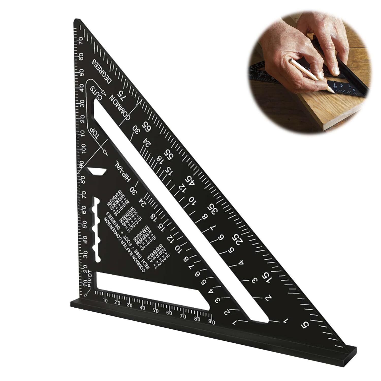 三角定規 木工用 丸鋸定規 直角定規 0-90度 アルミ合金 多角度 ツール 両面目盛り分度器 (ブラック)|DIY愛好家必見の多機能ツール!