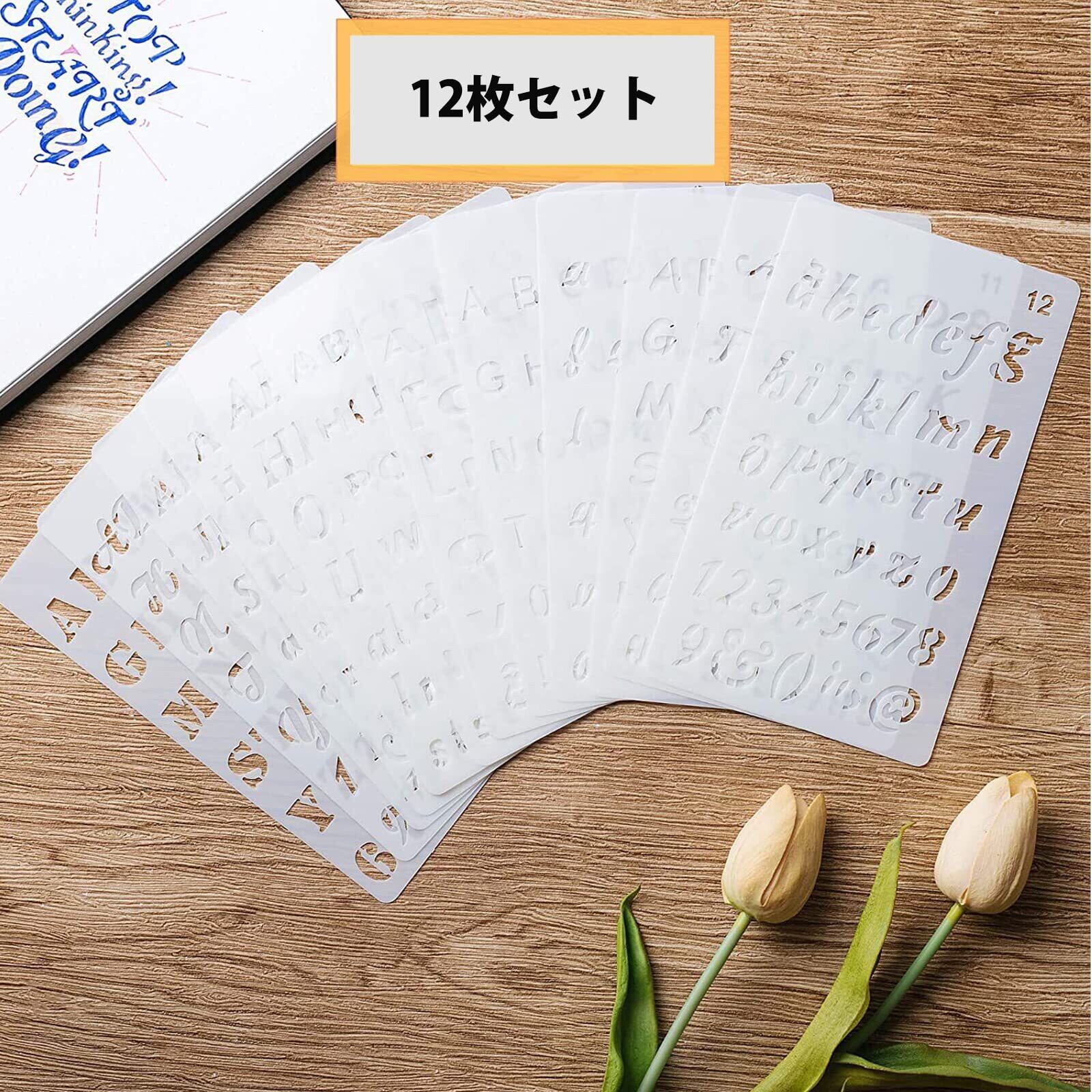 【種類が多い】このセットには、異なるデザインの12枚のステンシルシートが含まれています 。各種のアルファベット 、数字、句読点および最も一般的な記号が揃えております。多くのテンプレートがあり、さまざまな絵画のニーズを満たすことができます。自由自在に組み合わせてアレンジを楽しみましょう!