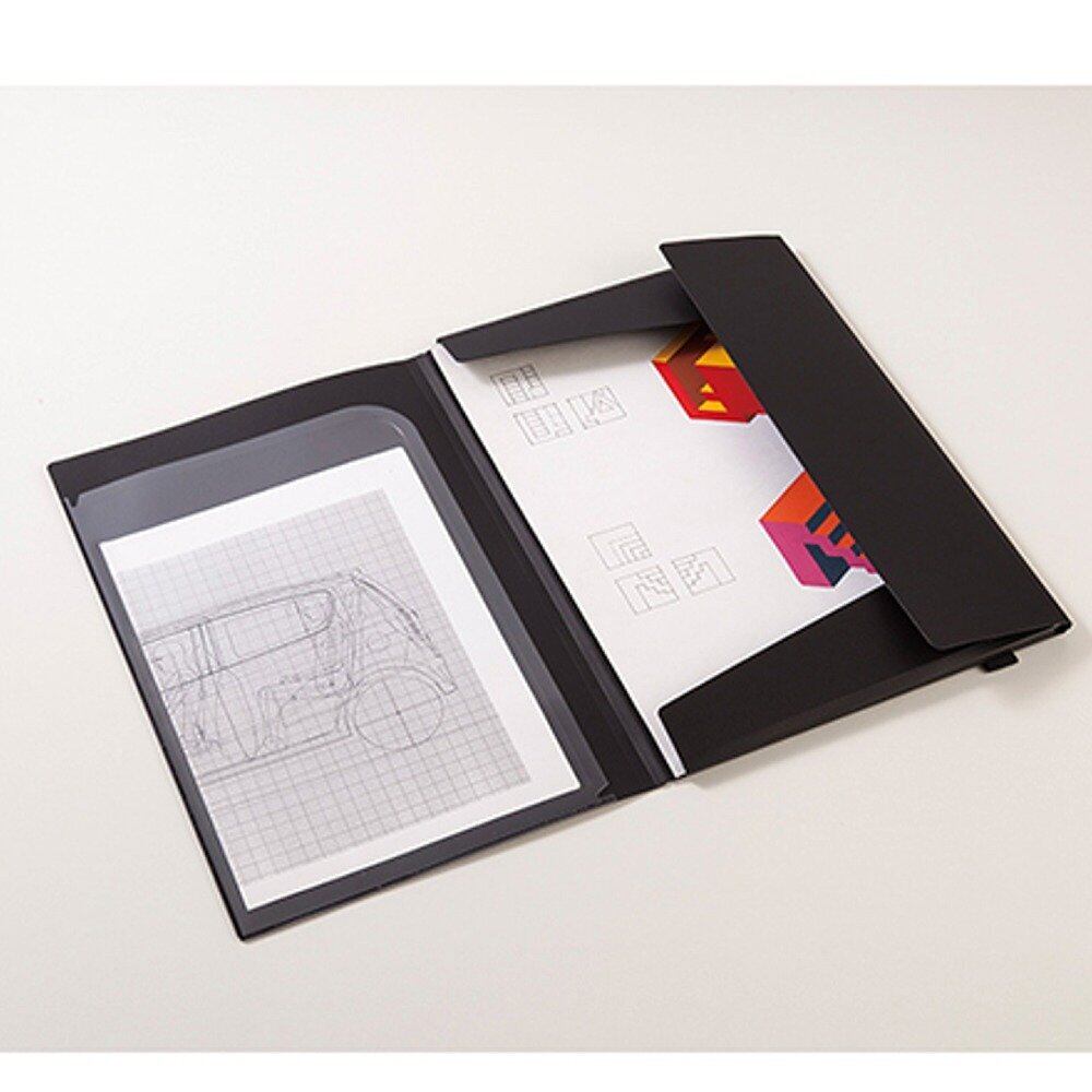 高耐久性のプラスチック素材を使用し、しっかりとした作りで、大切な書類をしっかり保護します。また、シンプルで洗練されたブラックカラーが、ビジネスシーンにもマッチし、どんな場所でも使いやすいデザインとなっています。