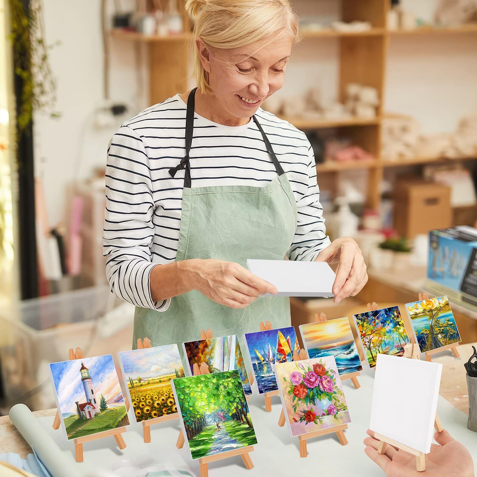 AOBOPLE 12個 ミニ イーゼル 木製 キャンバスセット 10cm * 10cm|アートを楽しむ、AOBOPLEのミニイーゼルセット!