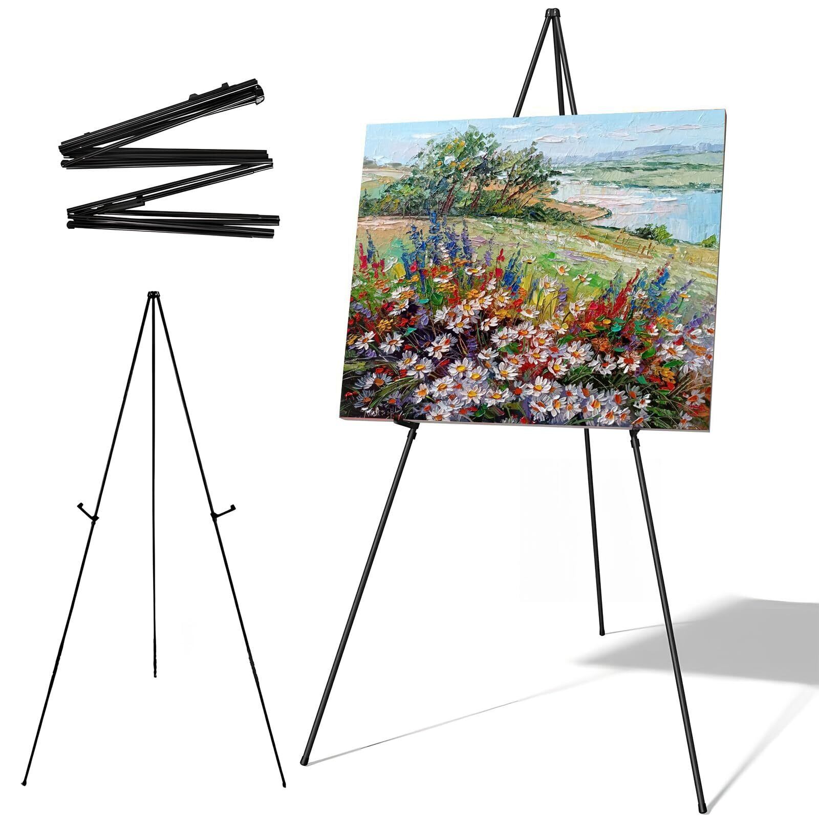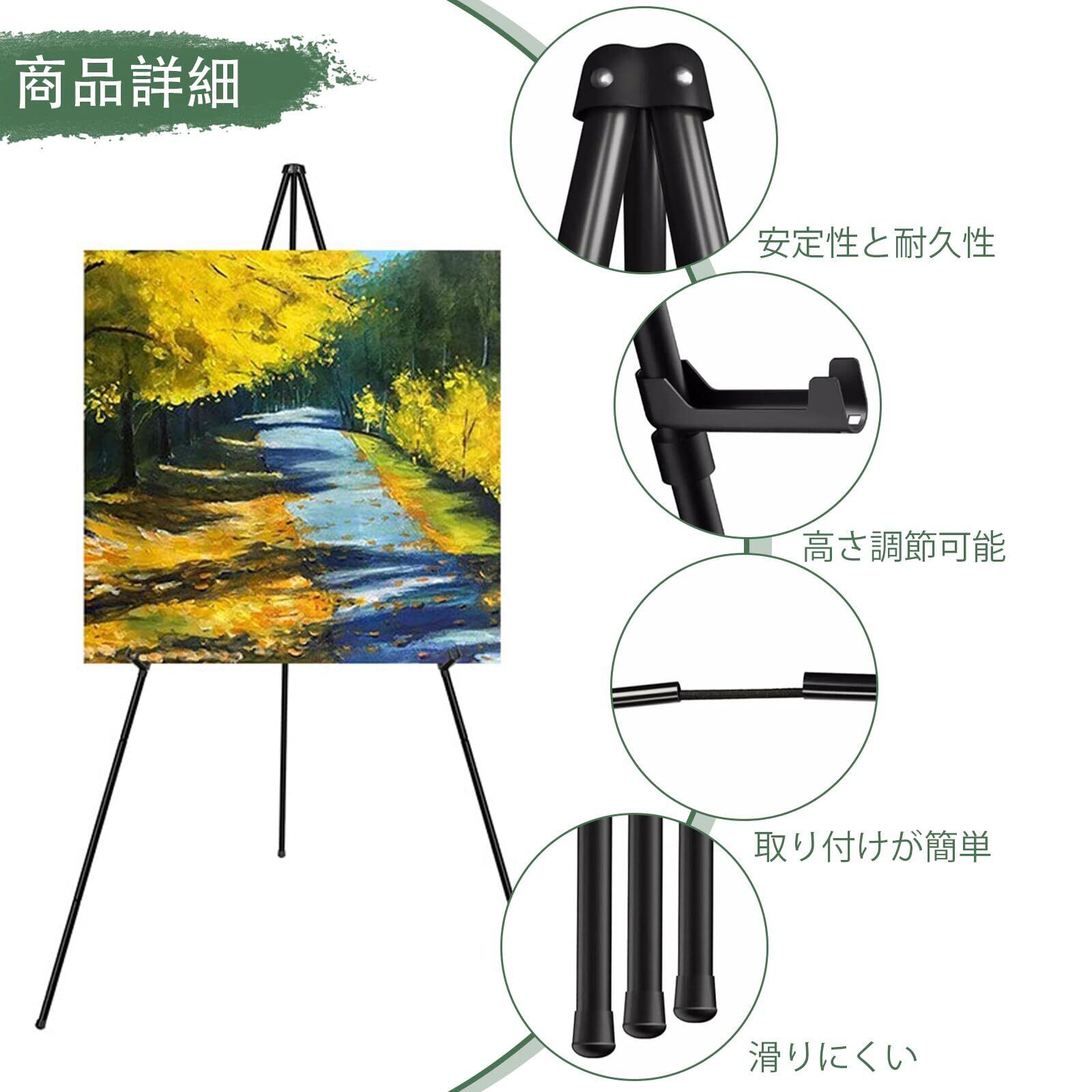 「イーゼルスタンド 折り畳み イーゼル 金属 黒で、あなたの作品やサインを魅力的に演出されます!このイーゼルは、あなたの創造的な瞬間を輝かせることでしょう!」