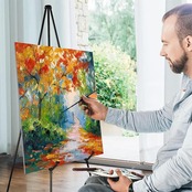 このイーゼルは、軽量で持ち運びが簡単な折りたたみ式です。使用しない際はコンパクトに収納でき、イベントや旅行など、あらゆるシーンで気軽に利用できます。専用の収納袋も付属しているため、保管も便利です。