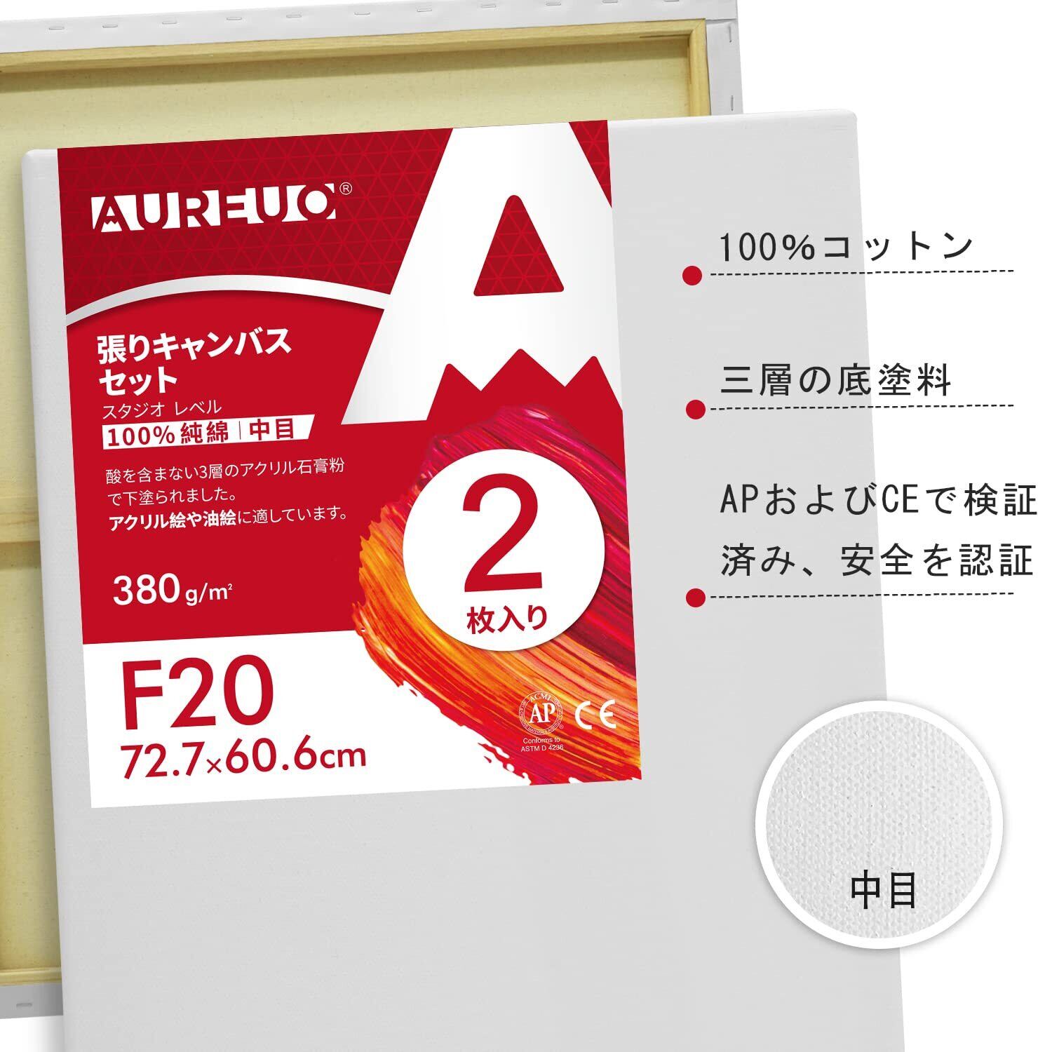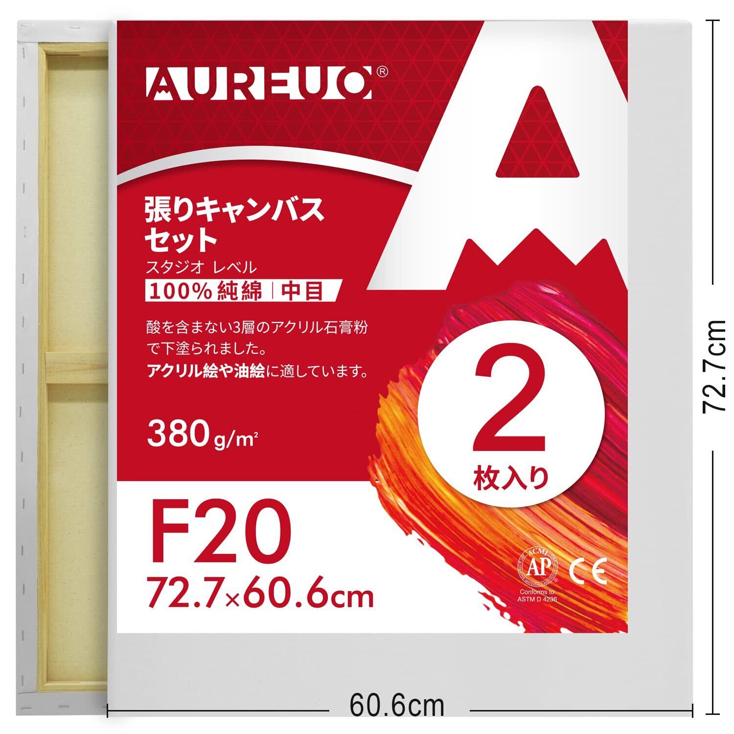 AUREUO 張りキャンバス セット F20 (72.7cmX60.6cm) 中目 100%コットン 2枚 初心者 絵画用具 芸術絵創作 現代油絵 美術装飾 水彩画・油絵画・アクリル兼用