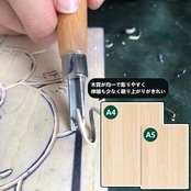 【版画用紙】吸水とインク拡散の素晴らしい能力を持っている宣紙が25枚ぐらい付き、版画練習用として最適。鉛筆と消しゴムもあるので、図案の版木に描くことと消すことが便利。クリップが2個あり、下絵を写す時、版画板と転写紙の固定用です。