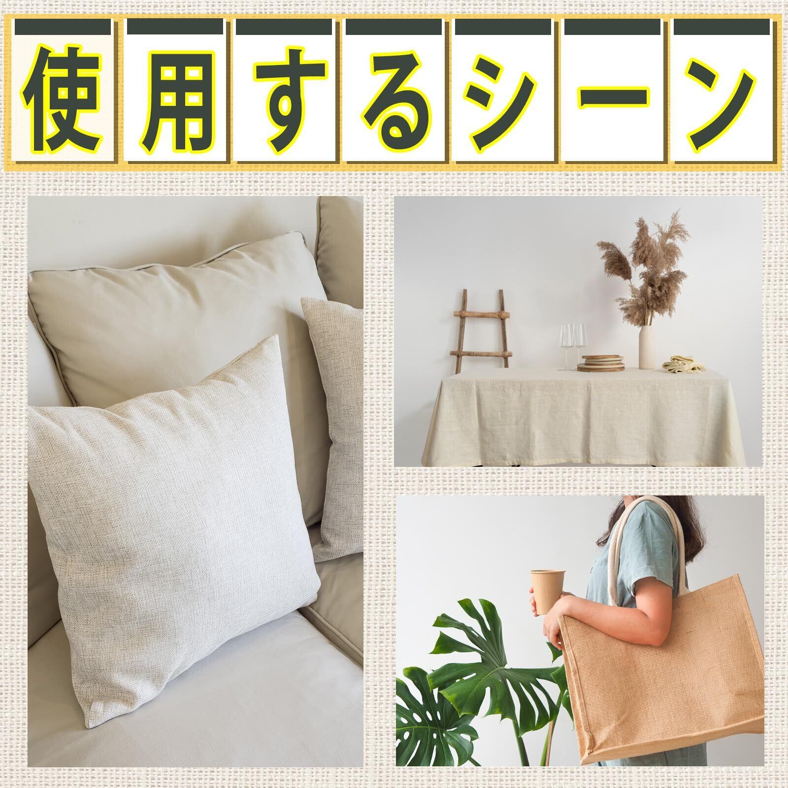 「この天然綿麻布で、あなたのアイデアを自由に形にし、特別なクリエイティブな体験を楽しんでください!この生地が、あなたの制作活動を全力でサポートします。」