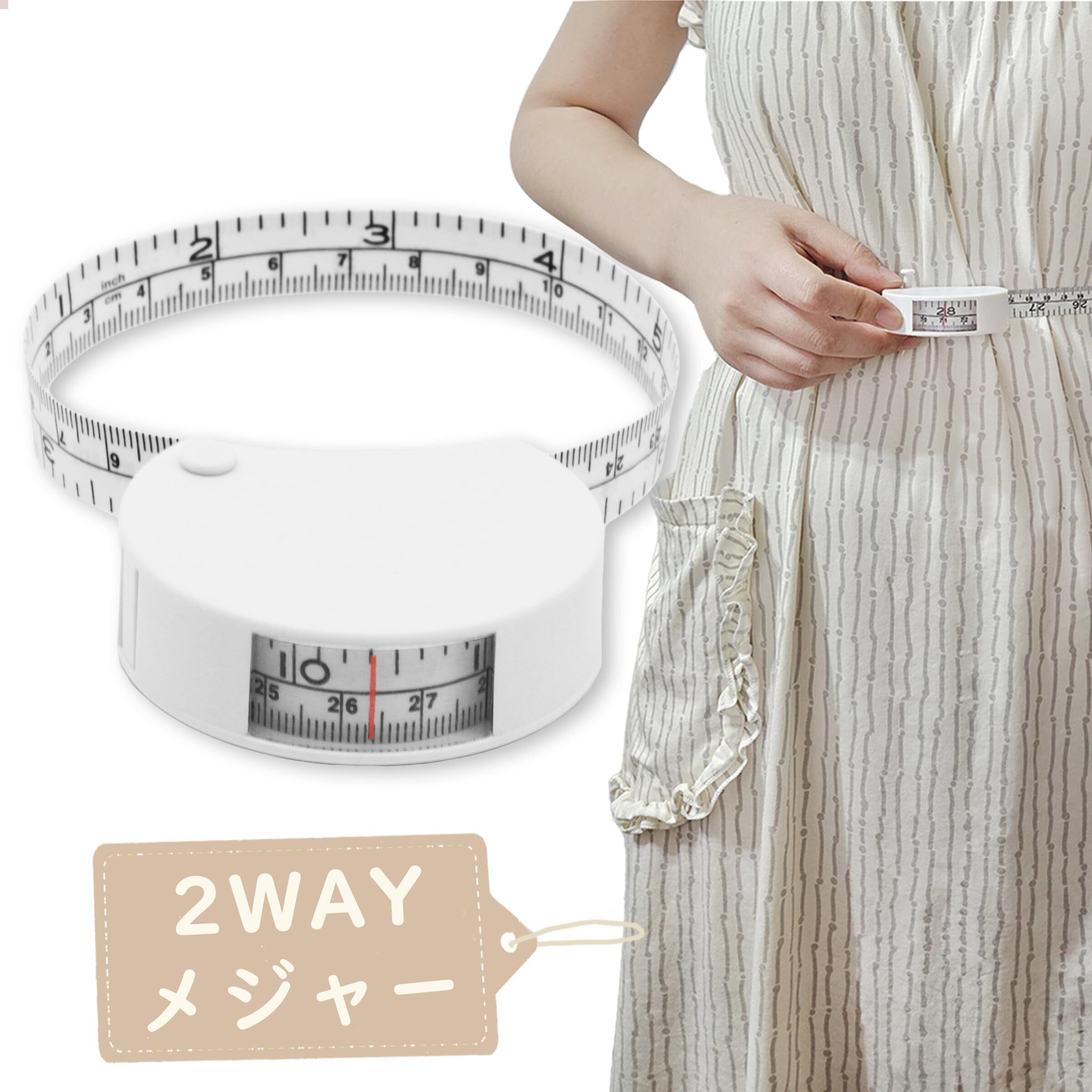 メジャー 巻き尺 【片手操作・2WAY・2024新登場】周囲測定テープ ウエスト 腹囲 メジャー 裁縫 150センチ インチ 胸囲 身体測定 (ホワイト)