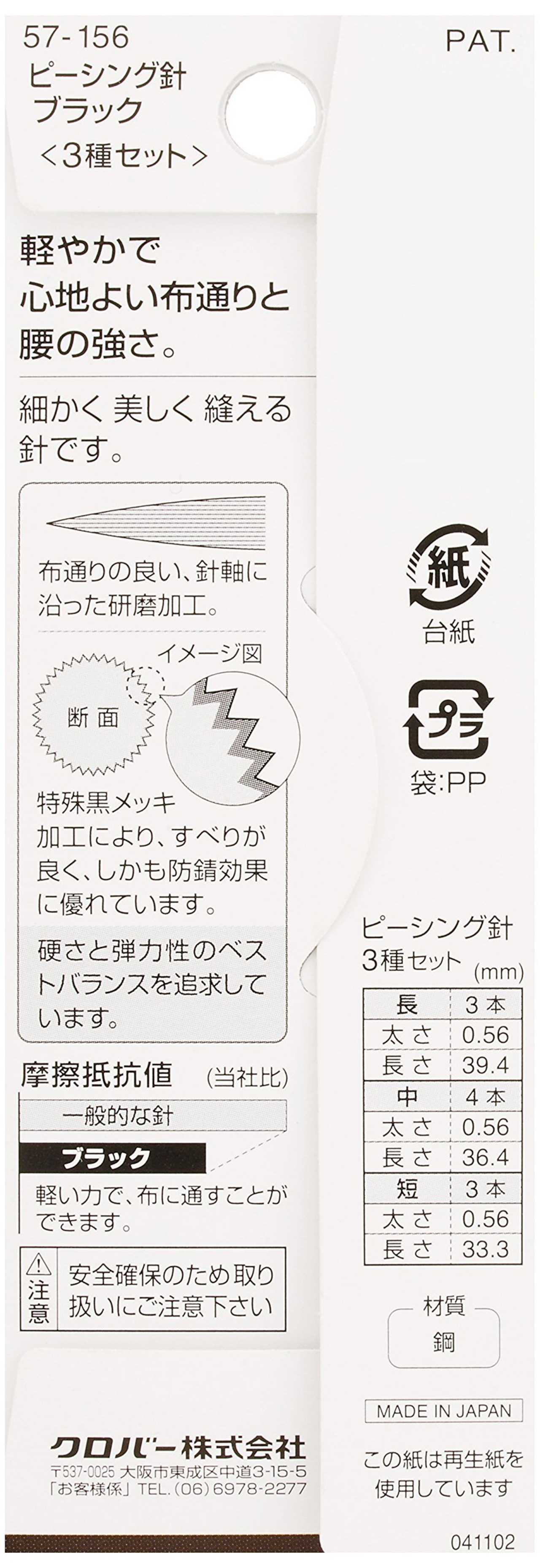 Clover ピーシング針 ブラック 3種セット 10本入り 57-156|多彩な縫製に対応する高品質なピーシング針が登場!