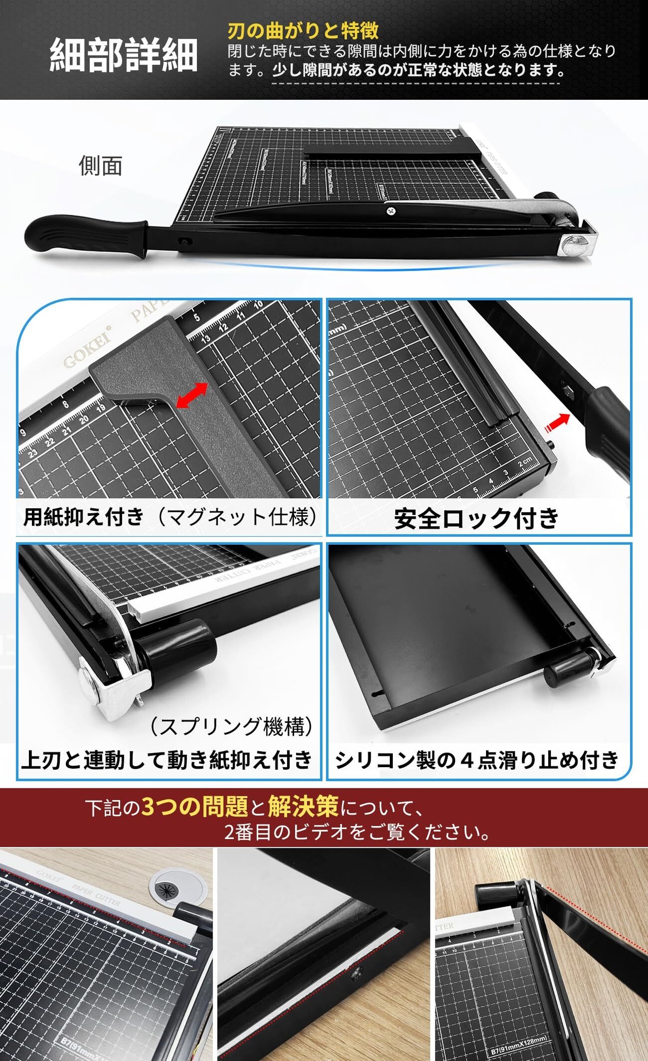 GOKEI 裁断機 ペーパーカッター A4 紙 B7 B6 A5 B5 対応 ズレ防止 裁断 ミニ カッター ペーパー 金属ベース裁断機 カッティングマシン 断裁機 業務用 家庭用 仕事用カラー黒