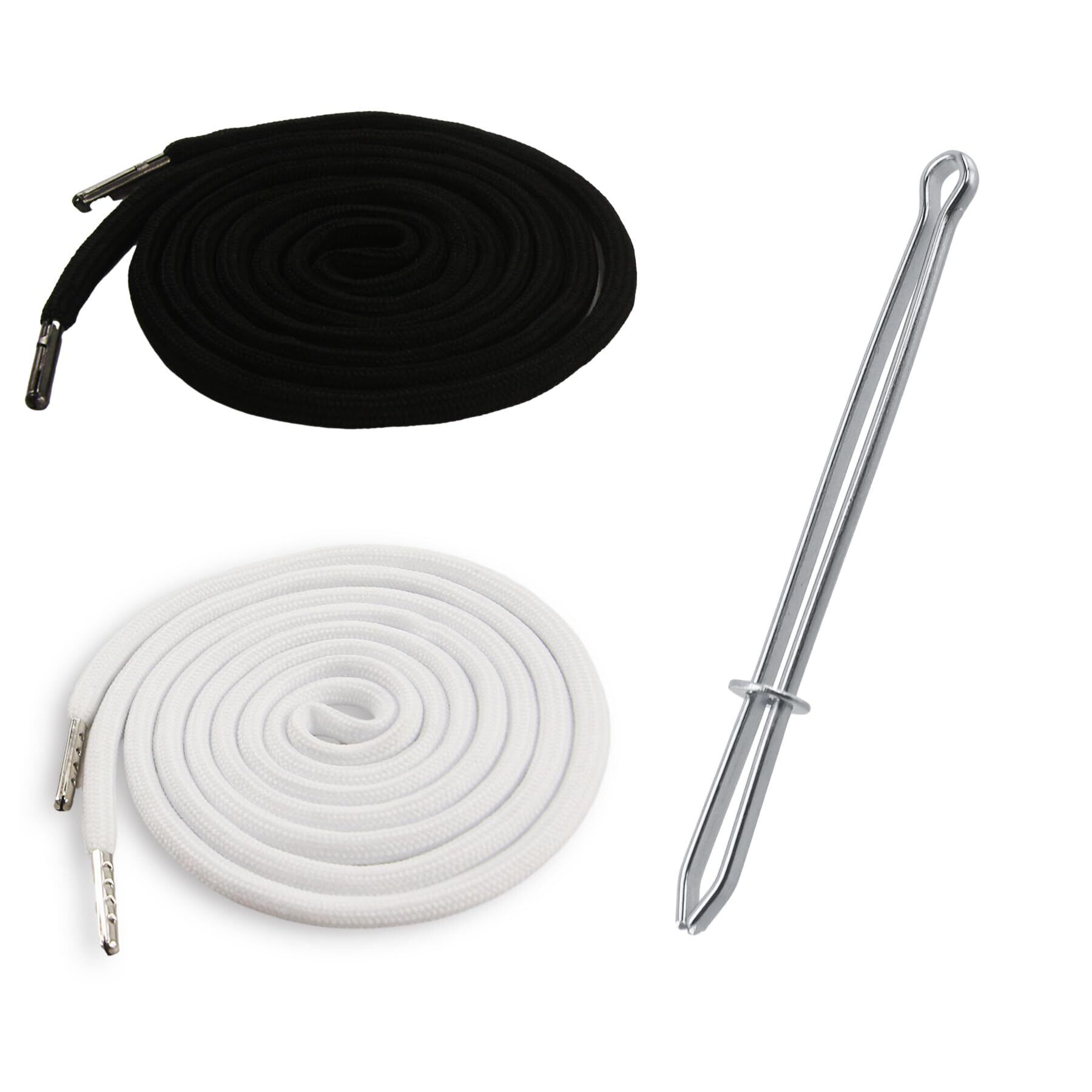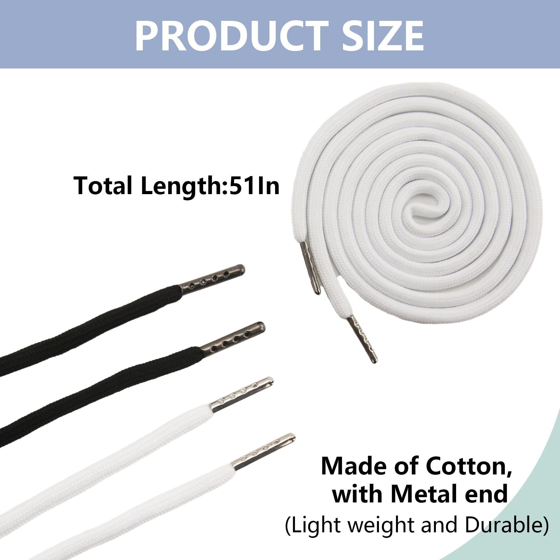 BOROLA 2本入り 51インチ コットンドローストリング、スウェットパンツとショーツ用交換ドローストリング、ユニバーサルフーディー用ドローストリング交換、簡単な金属スレーダー付き(ブラック+ホワイト)