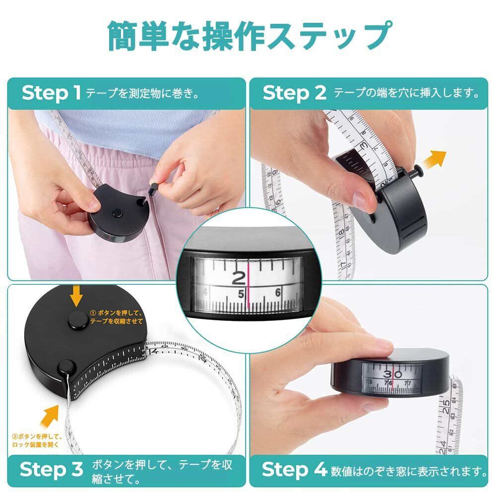 メジャー 巻き尺 【片手操作・自動巻取・2WAY】 裁縫 洋裁 定規 テープメジャー 150cm バスト ウエスト 測定 センチ インチ メジャー 巻取りボタン付き 計測 手芸 軽量 胸囲測定 (ブラック)|新たなスタイルの測定ツールが登場!