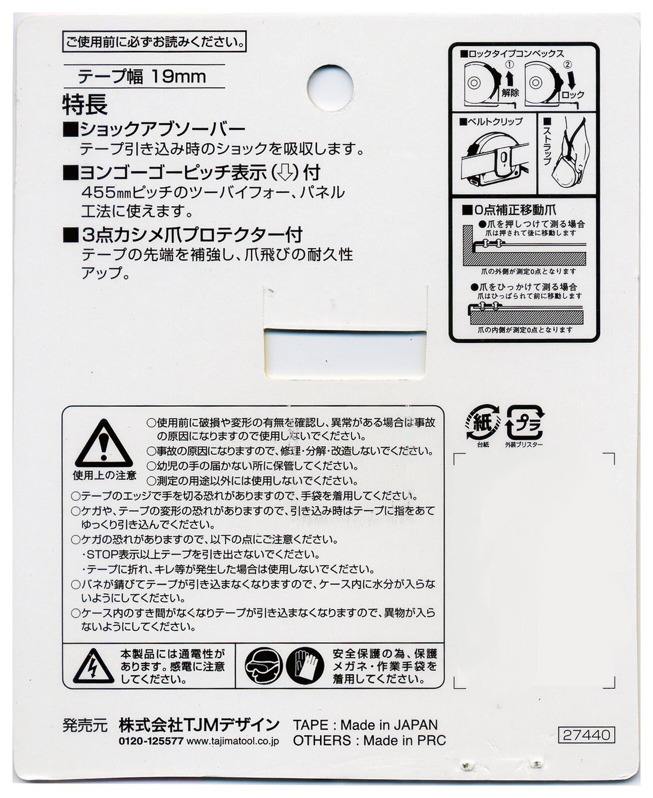 19mmの幅と7.5mの長さは、様々な場面での計測に最適です。しっかりしたテープが安定した測定を実現し、あらゆるプロジェクトに対応します。見やすい目盛では、瞬時に正確な計測が可能です。