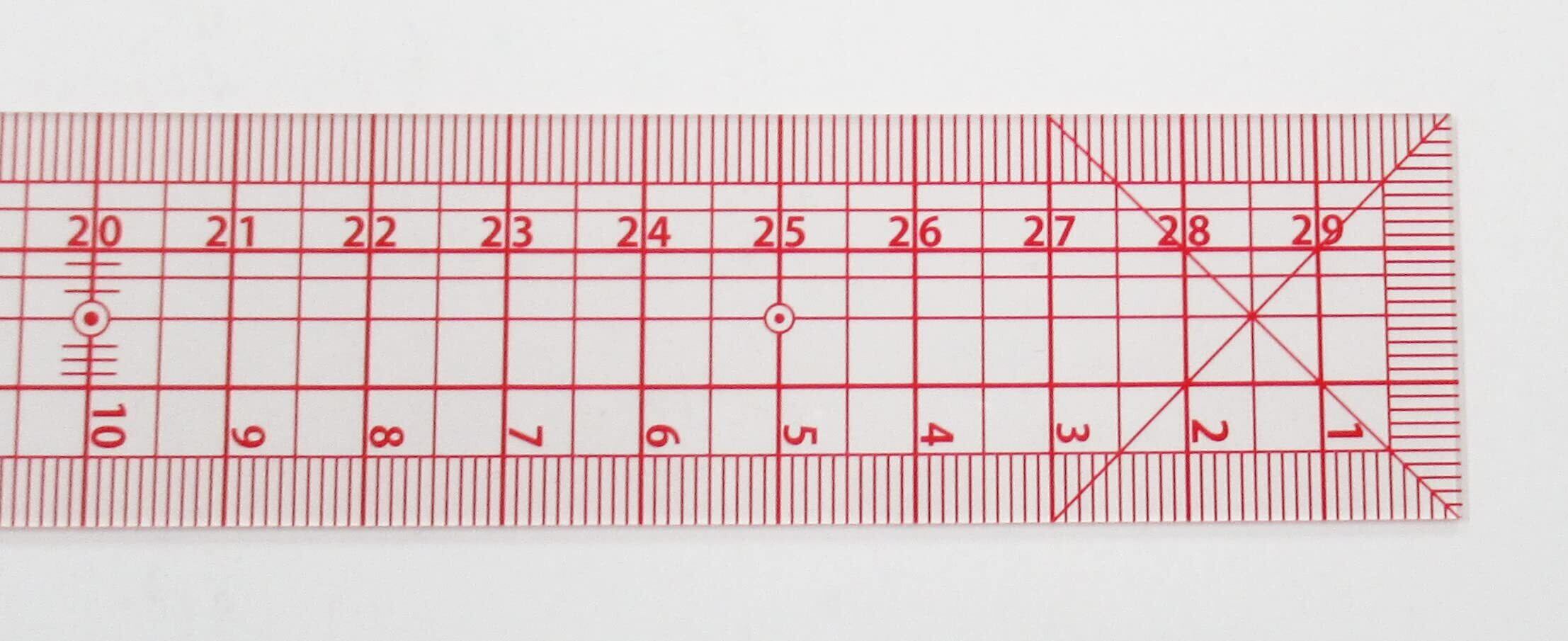 30cmの長さと方眼のデザインは、精密な計測に最適です。分かりやすい目盛りがあり、布地上でも簡単に測定ができます。初心者からプロまで、すべての方にご利用いただけます。