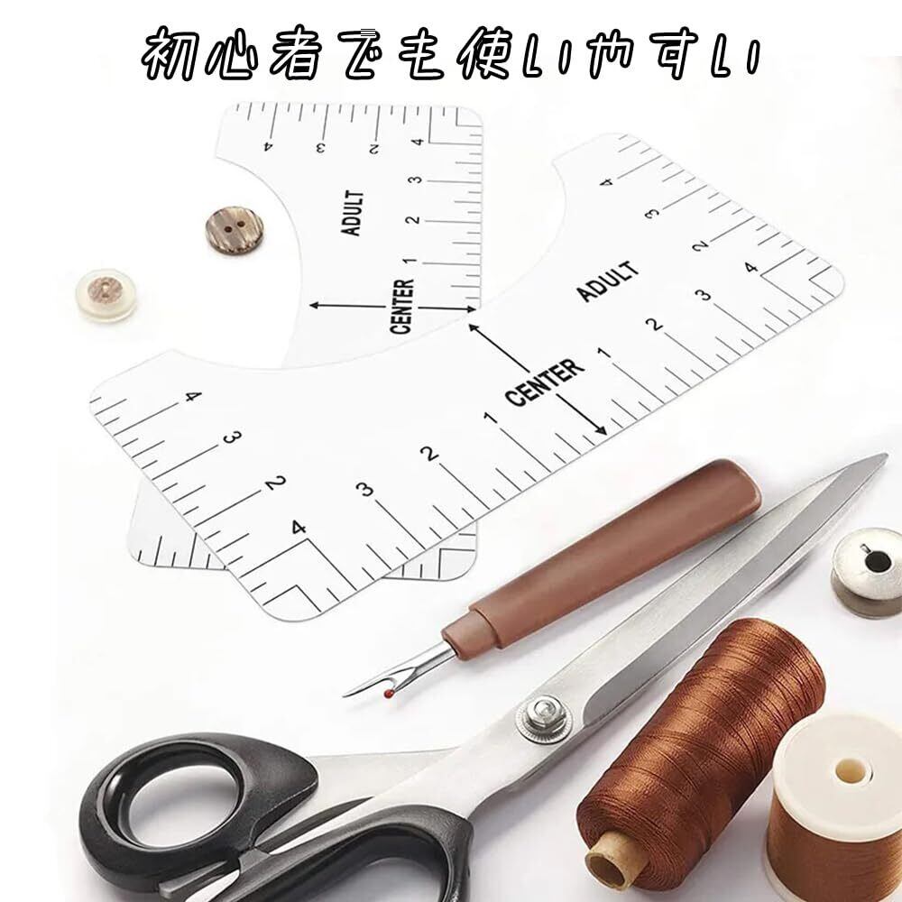 【使いやすい】定規を襟の位置に合わせ、作成する中心点の正確な位置を見つけ、Tシャツの作成を開始することができます。洋服の生地の裁断など日常的な工程で使えるだけでなく、熱転写Tシャツや熱プレスなどの道具にも適しています。