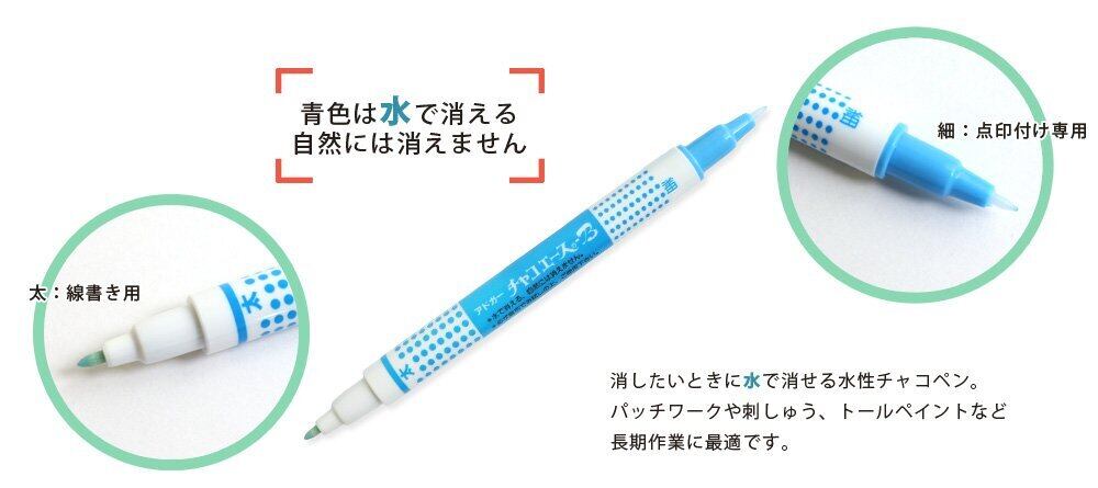 このチャコペンは、洋裁、刺繍、パッチワークなど、様々な手芸や裁縫作業に対応しています。初めて手芸をする方から経験豊富な方まで幅広くご使用いただけ、クリエイティブな表現が楽しめます。