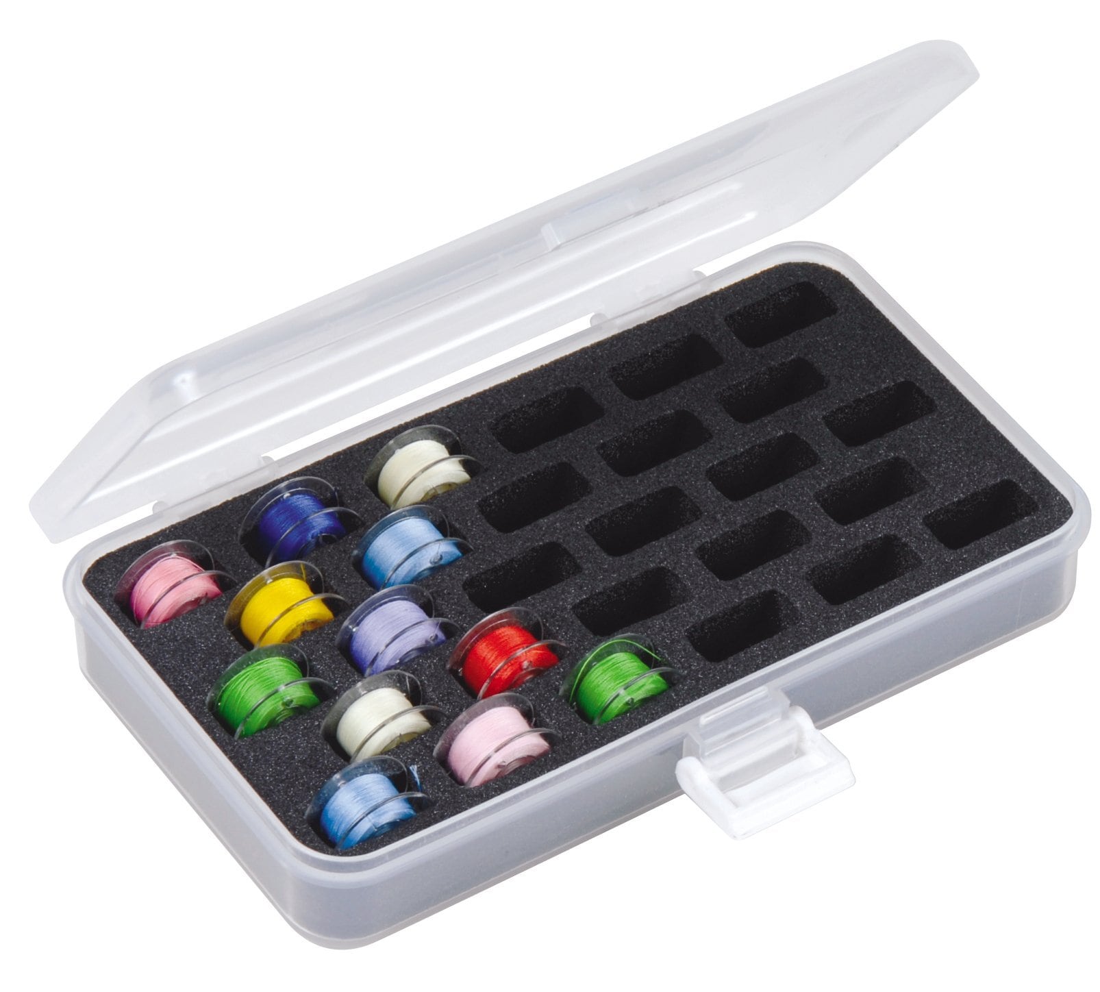 家庭用ミシンの半回転用と全回転用のボビンが28個収納出来ます。