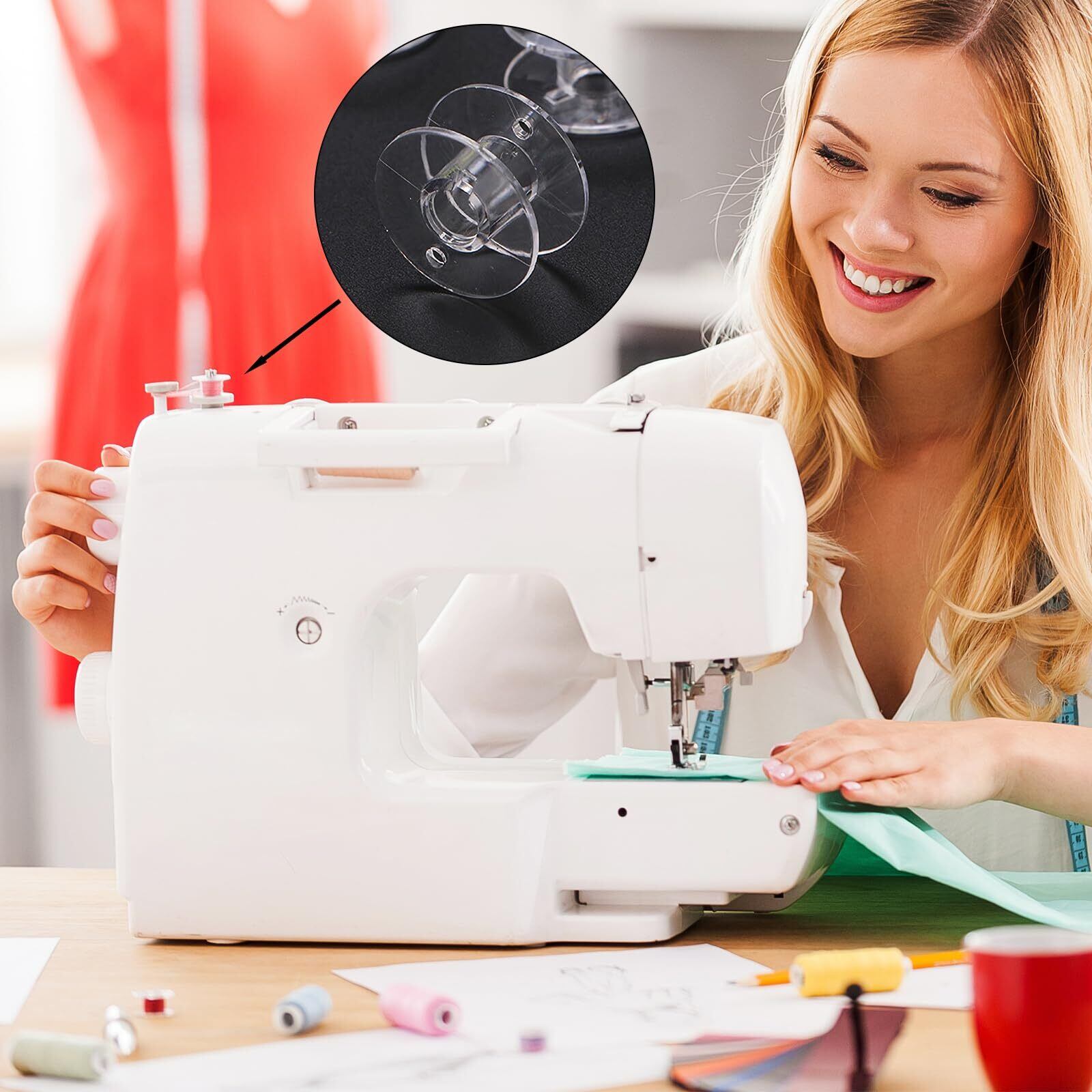 透明なボビンは糸の色や種類を一目で確認できるため、作業中の手間を大幅に省き、効率的な作業をサポートします。すっきりとしたデザインは、あなたの作業空間にも美しく調和します。