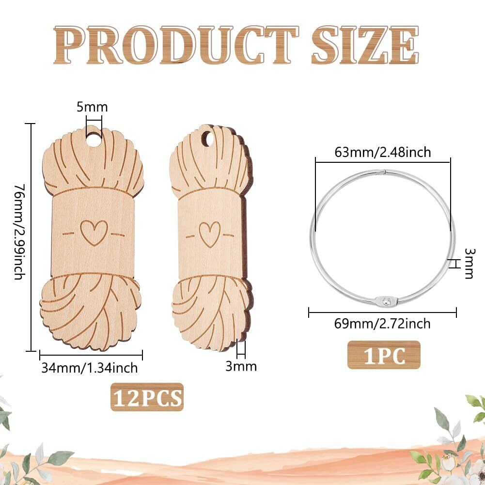 サイズ詳細:木糸巻き板: 76x34x3mm、穴: 5mm、12個;リング: 69x3mm、内径: 63mm、1個。