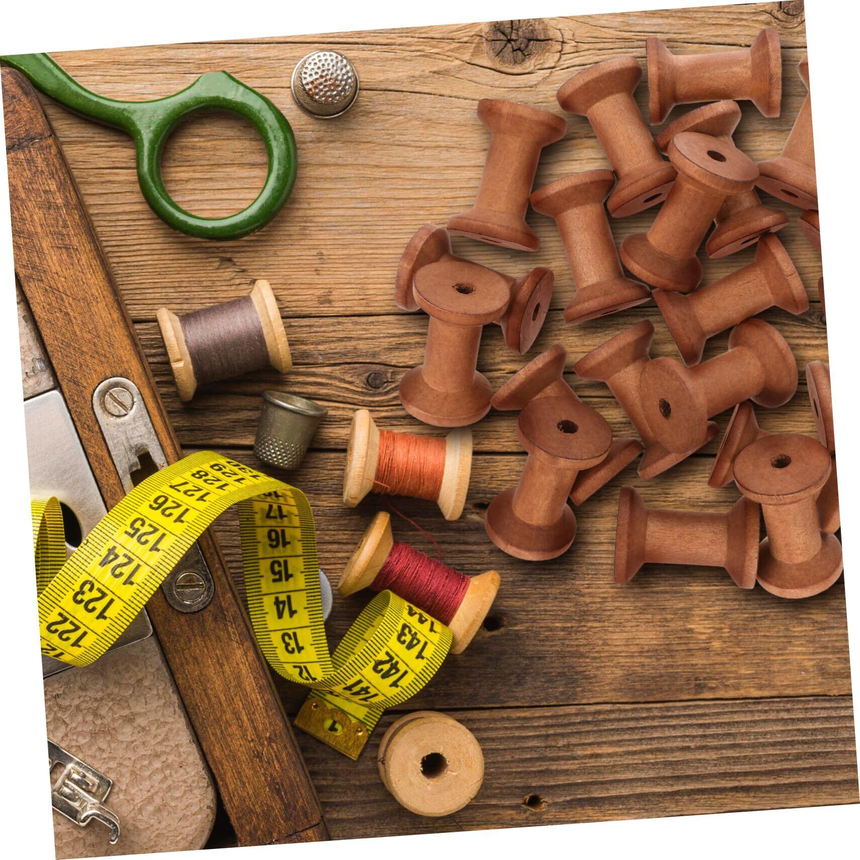 レトロな魅力: これらの木製糸スプールは木目調のモチーフを示し、素朴で温かみがあり、縫製プロジェクトに自然な美学を吹き込みます、刺繍糸スプール、木製スプール
