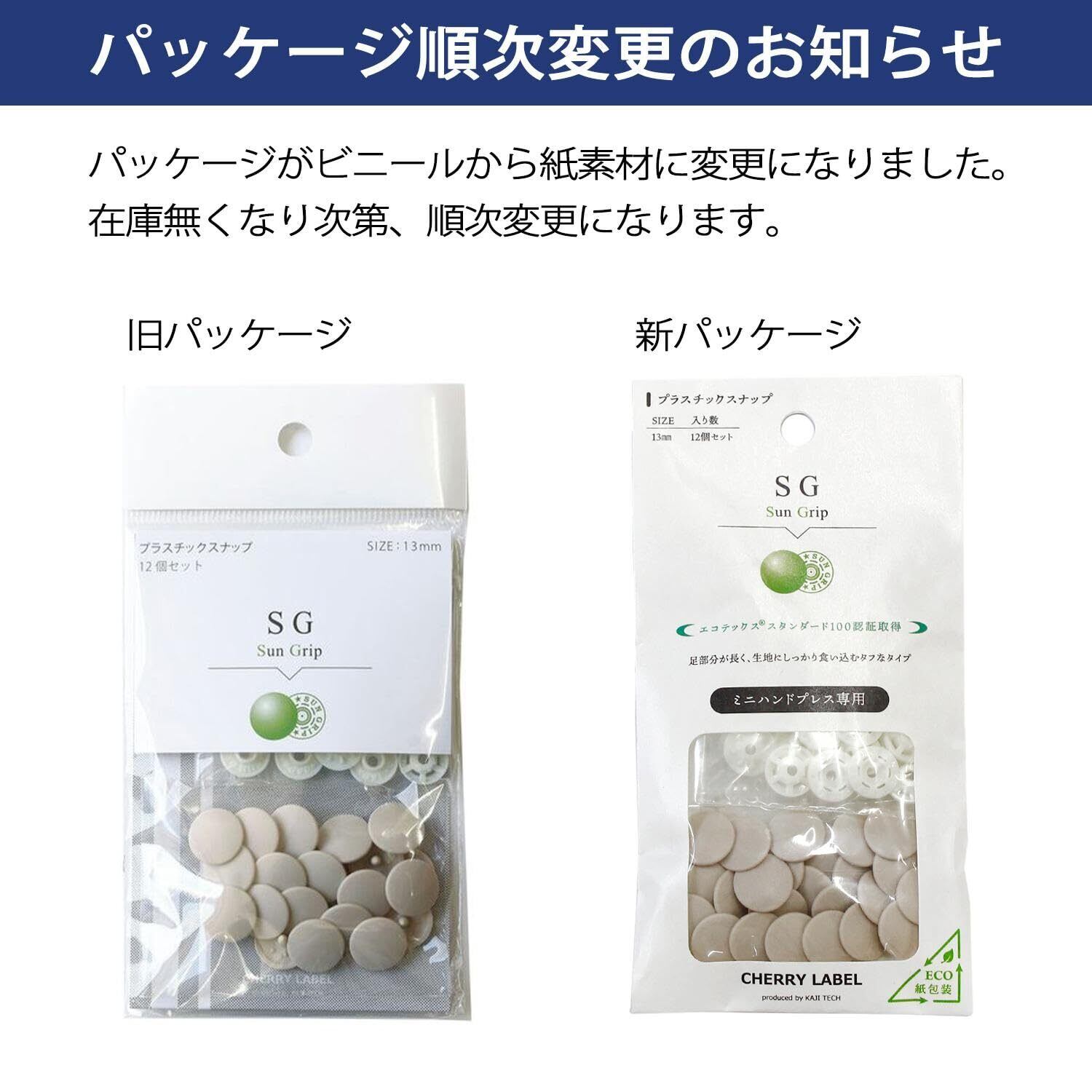 内容: サングリップ プラスチックスナップボタン3色セット(ライトグレー、アイボリー、オフホワイト)各13mm 12組入り