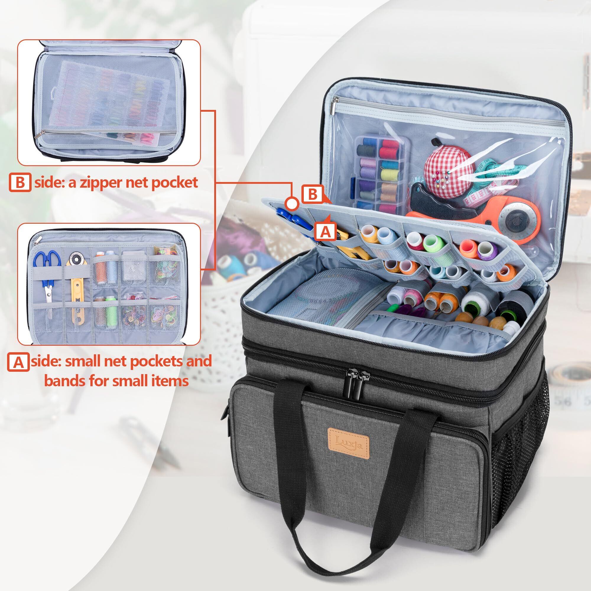 Luxja 裁縫箱 大容量 裁縫バッグ 二段式収納 マルチポケット 裁縫道具 収納 持ち運び用 ソーイングバッグ バッグのみ グレー|スタイリッシュで機能的な裁縫バッグで、裁縫ライフをもっと楽しもう!