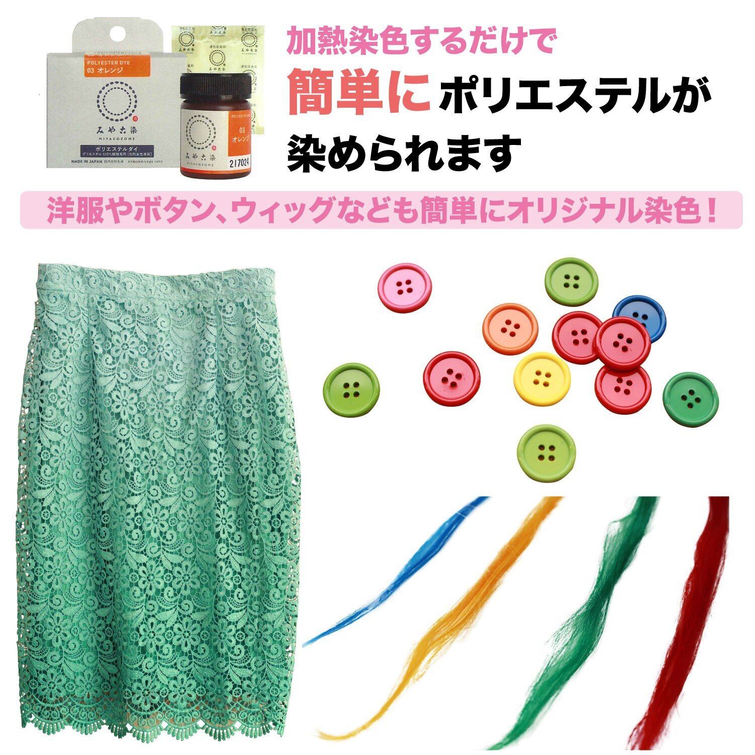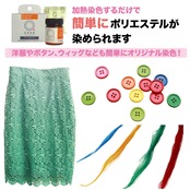 さらに、ブラウスやスカートなどの衣類だけでなく、ボタンやウィッグもポリエステル100%であれば染色可能です。