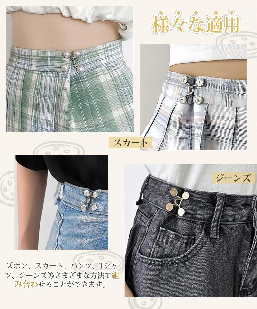 このウエスト調整ボタンは、むき出しのリベット付きで、取り外しも簡単。必要に応じてジーンズやスカートのサイズを調整でき、いつでも快適な着心地を実現します!